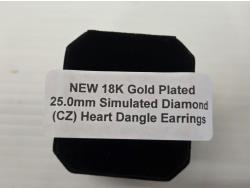 Smartlife 18 K Gold Plated 25.0 mm Simulated Diamond (CZ) Heart Dangle Earrings (Unused)