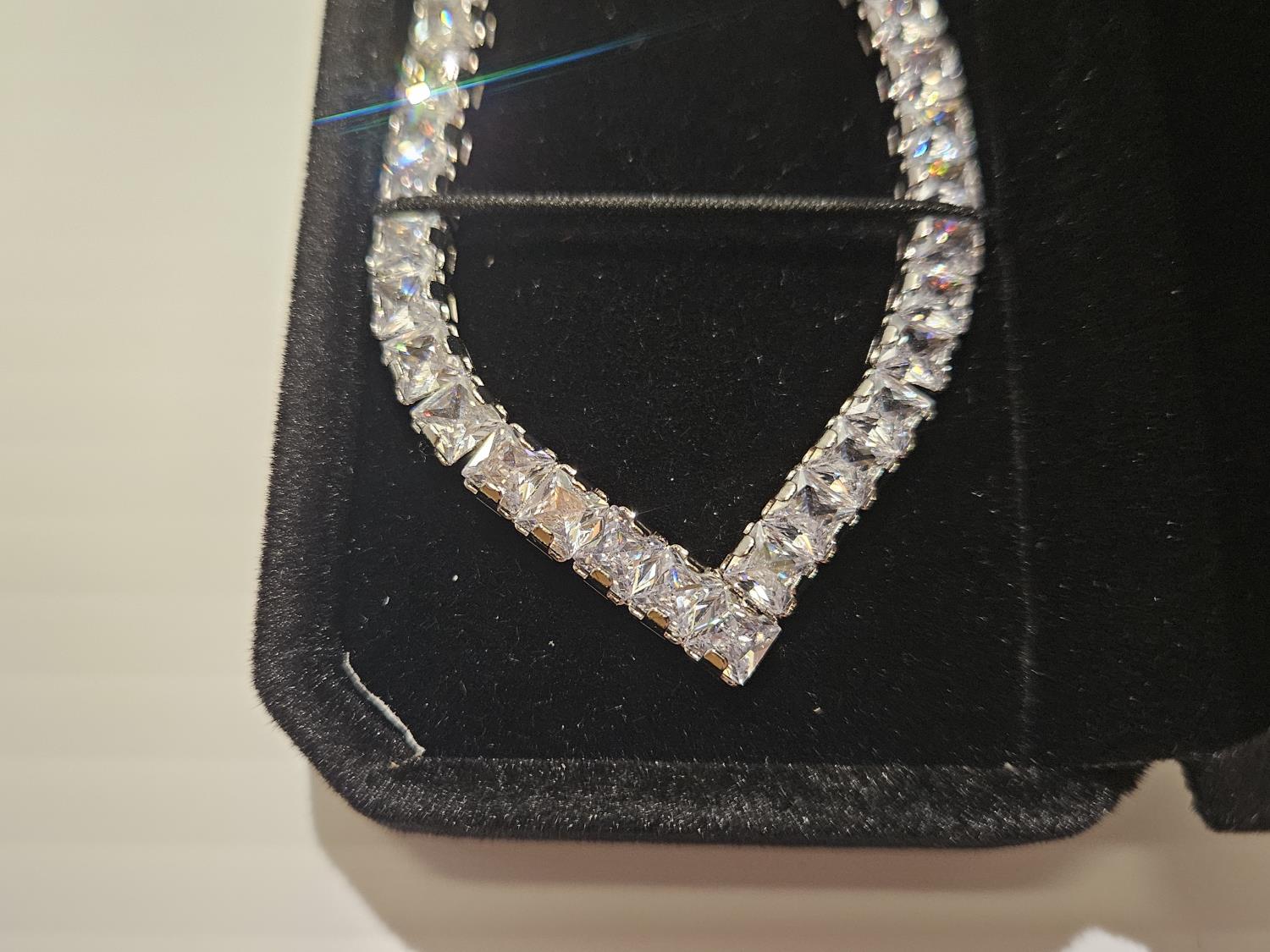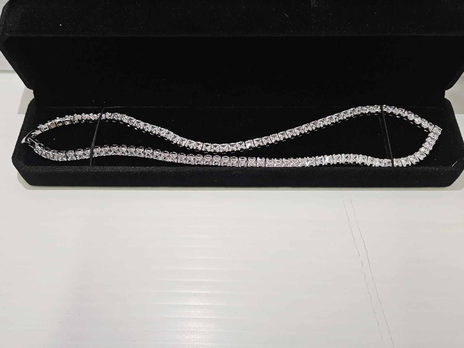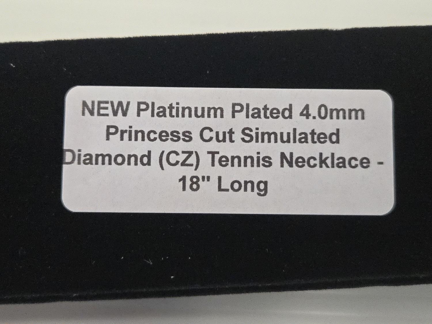 2024 Smartlife Platinum Plated 4.0 mm Princess Cut Simulated Diamond (CZ) Tennis Necklace (Unused)
