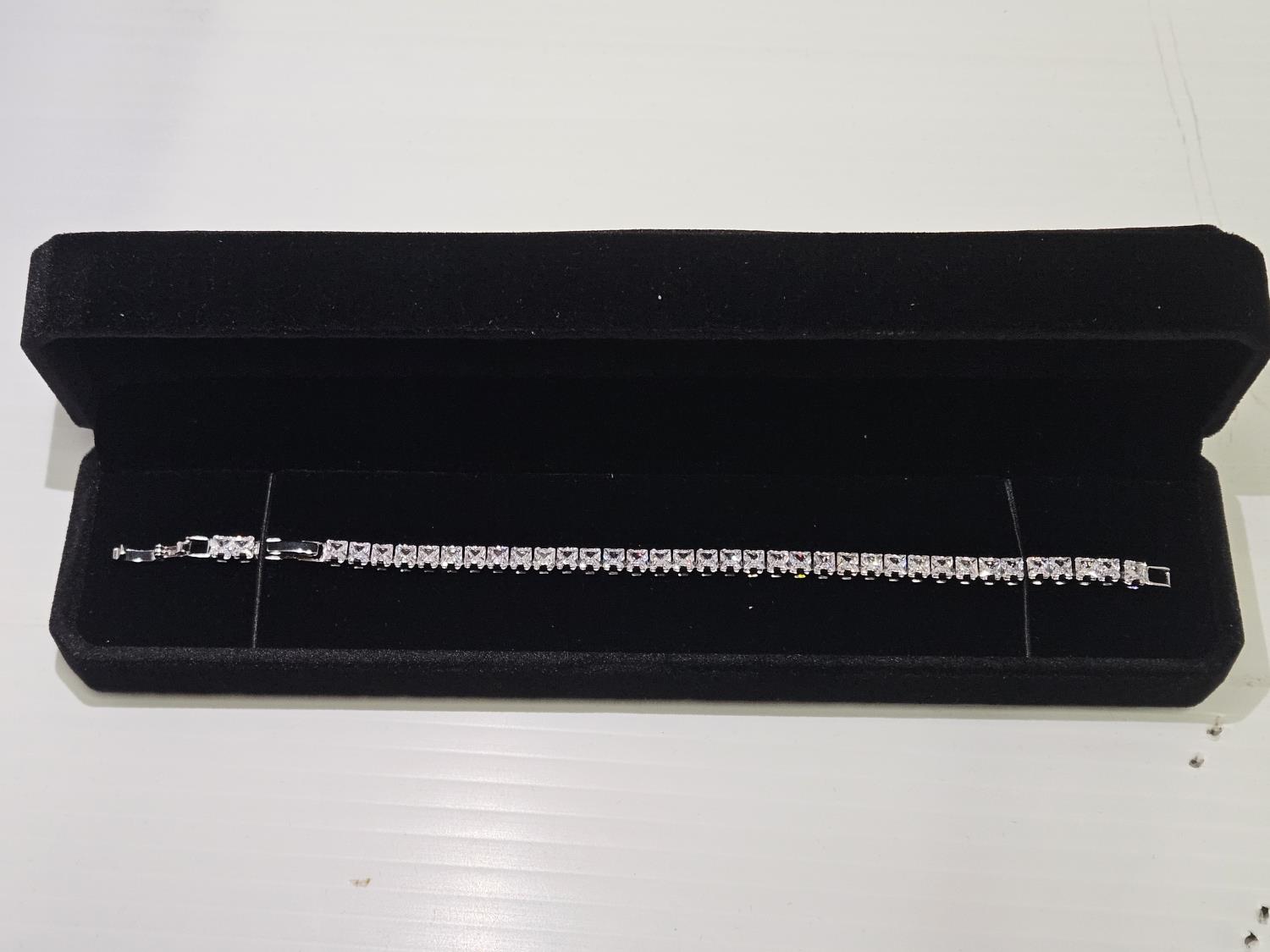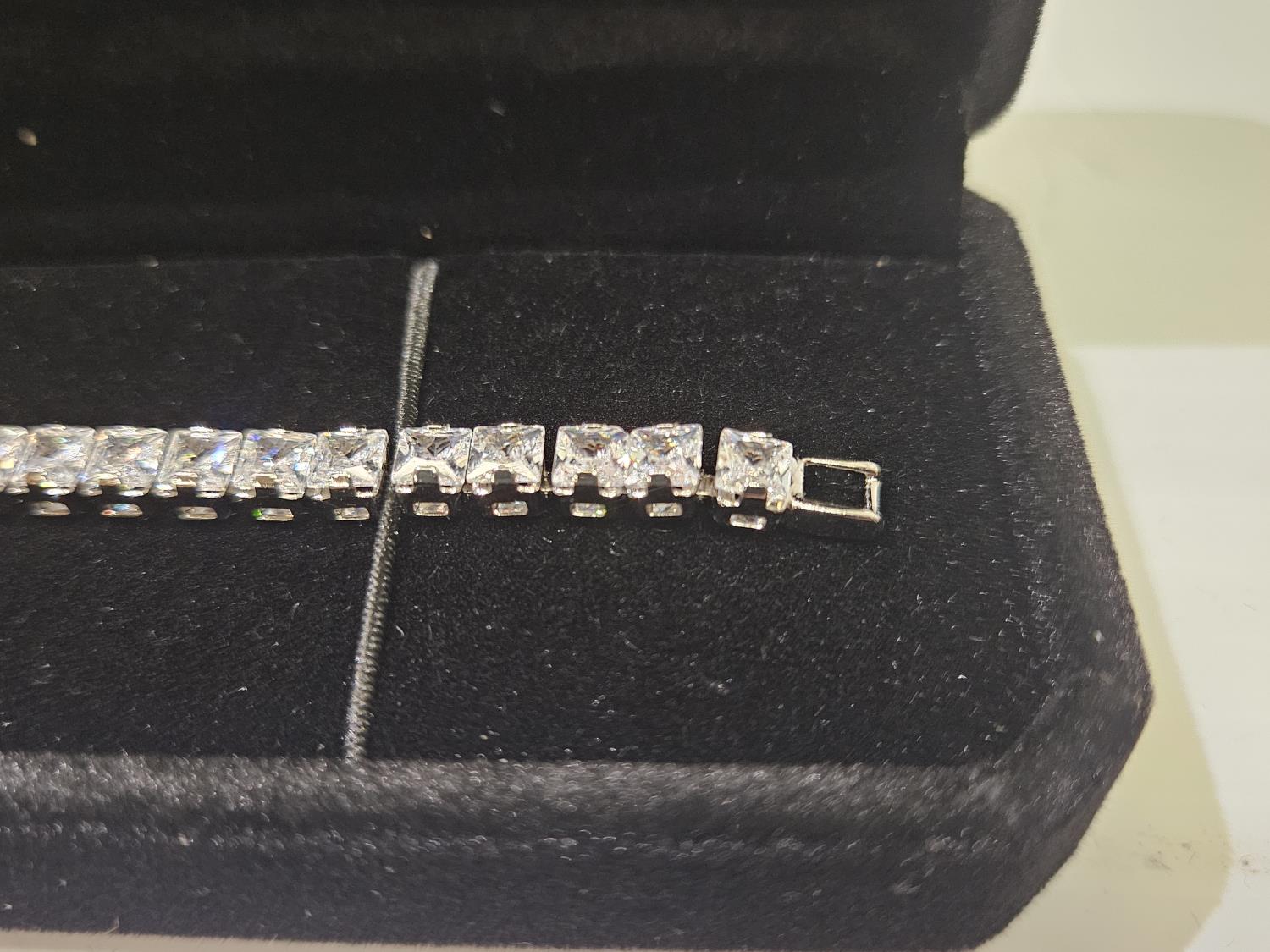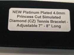 Smartlife Platinum Plated 4.0 Princess Cut Simulated Diamond (CZ) Tennis Bracelet (Unused)