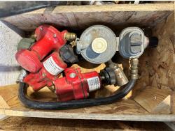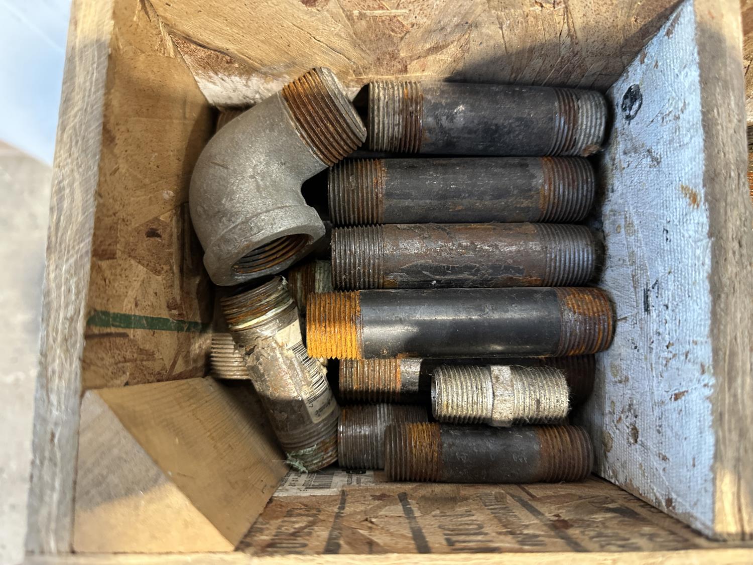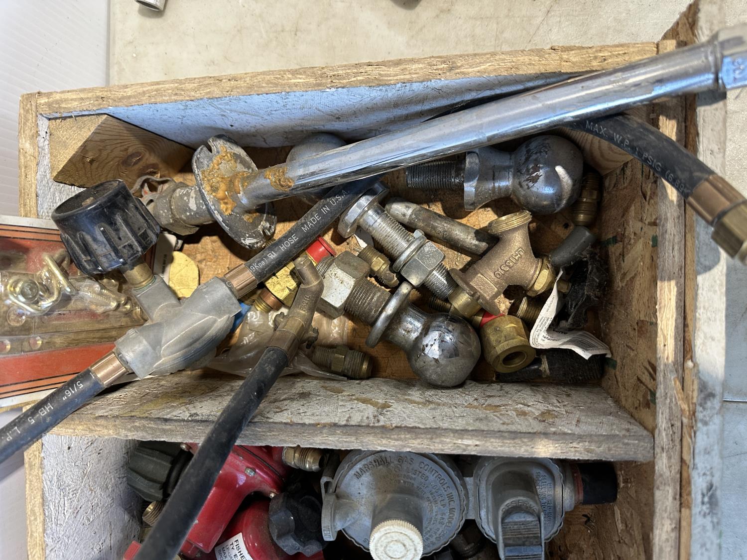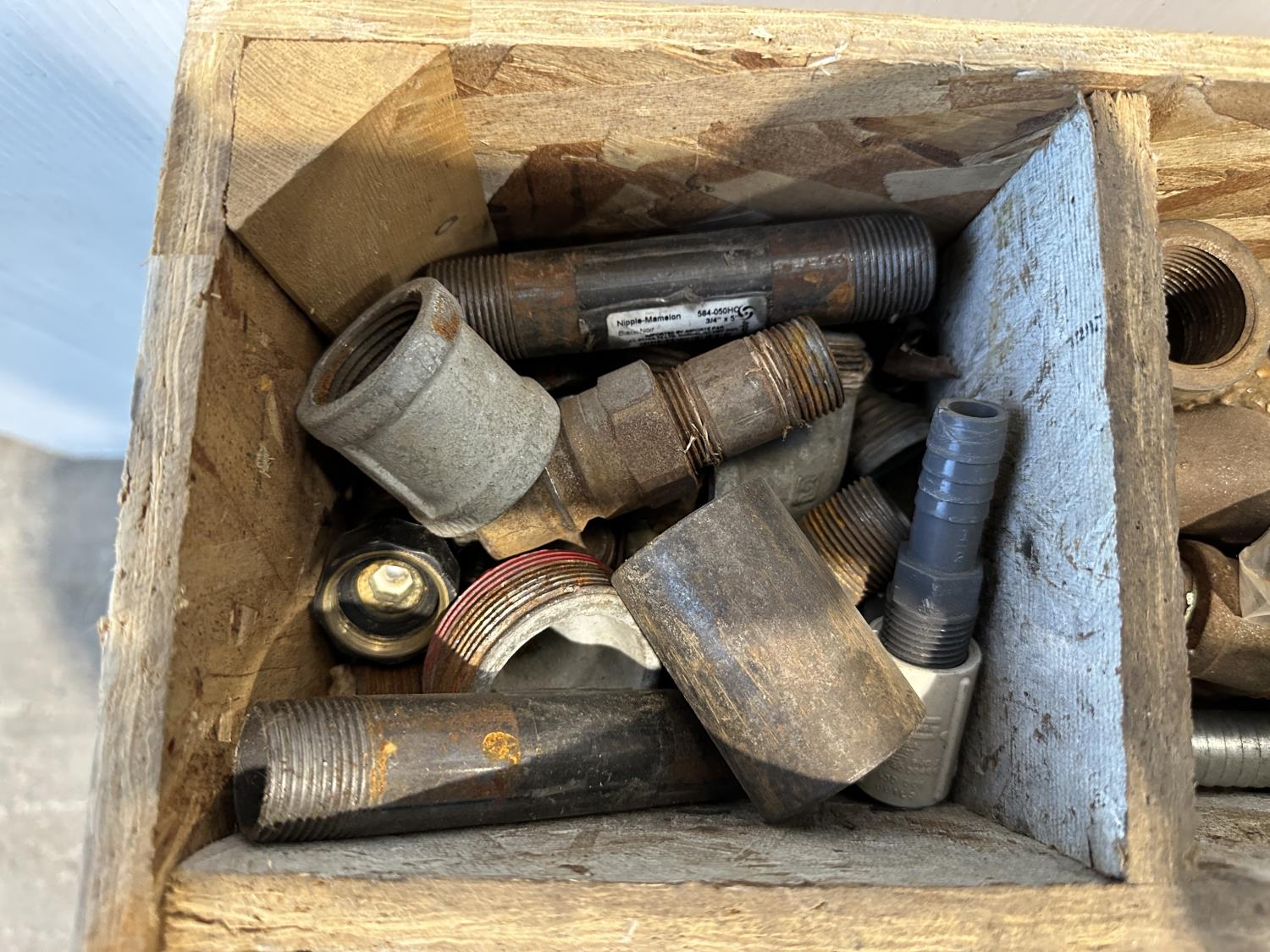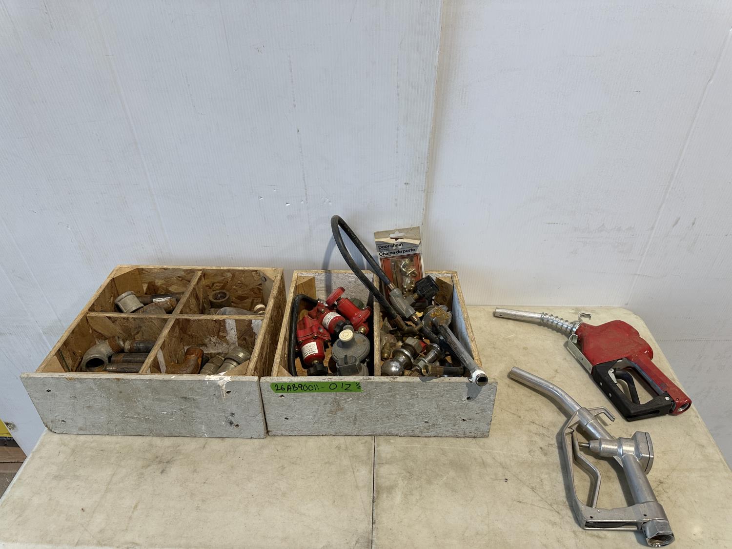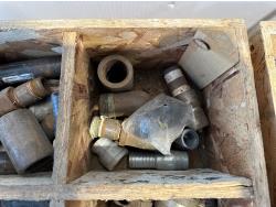 1023 (2) Fuel Nozzles, Wooden Chest and Assortment of Fittings