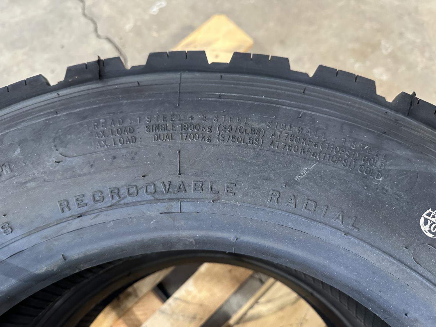 1064 (2) Boto BT957 225/70R19.5 Regroovable Tires (Unused)