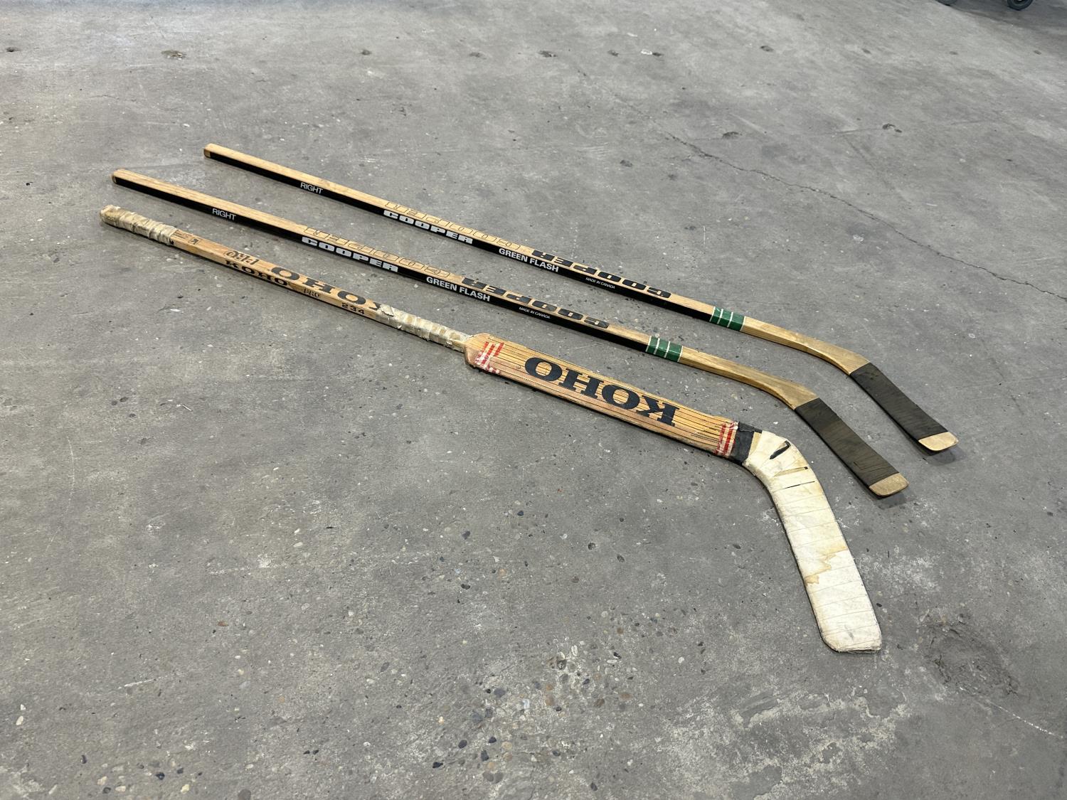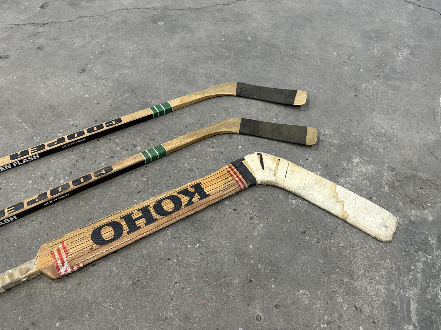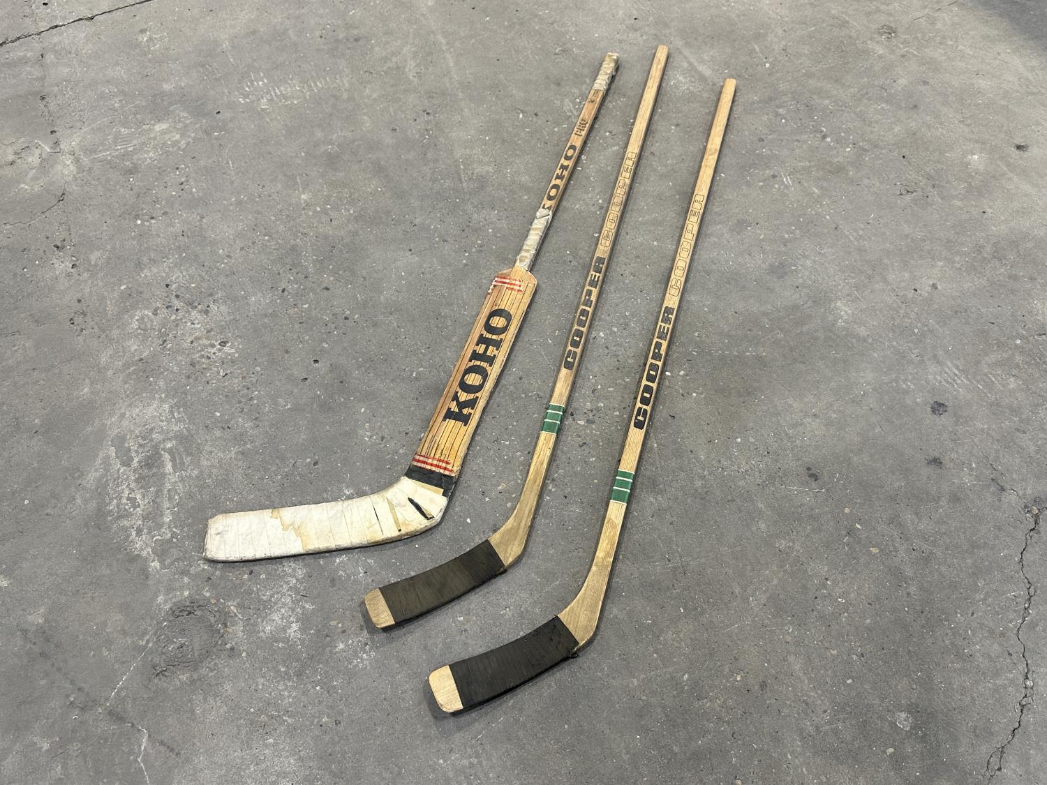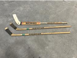 1026 (3) Vintage Wooden Hockey Sticks