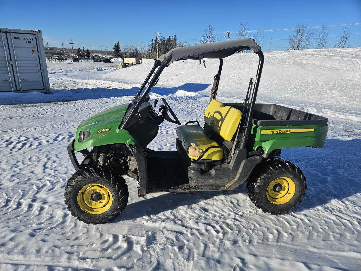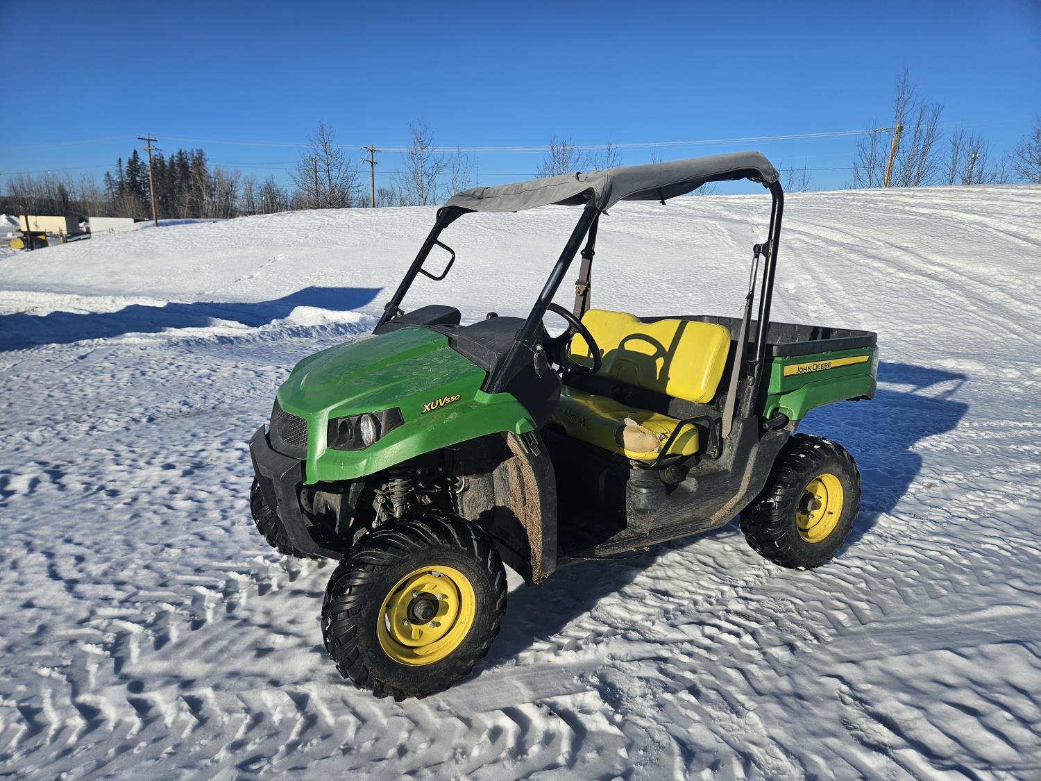550 cc engine, automatic transmission, Hi/Lo range, reverse, 2 passengers, rear locking differential, manual dump box, receiver hitch, 25X8-12 front tires, 25X10-12 rear tires