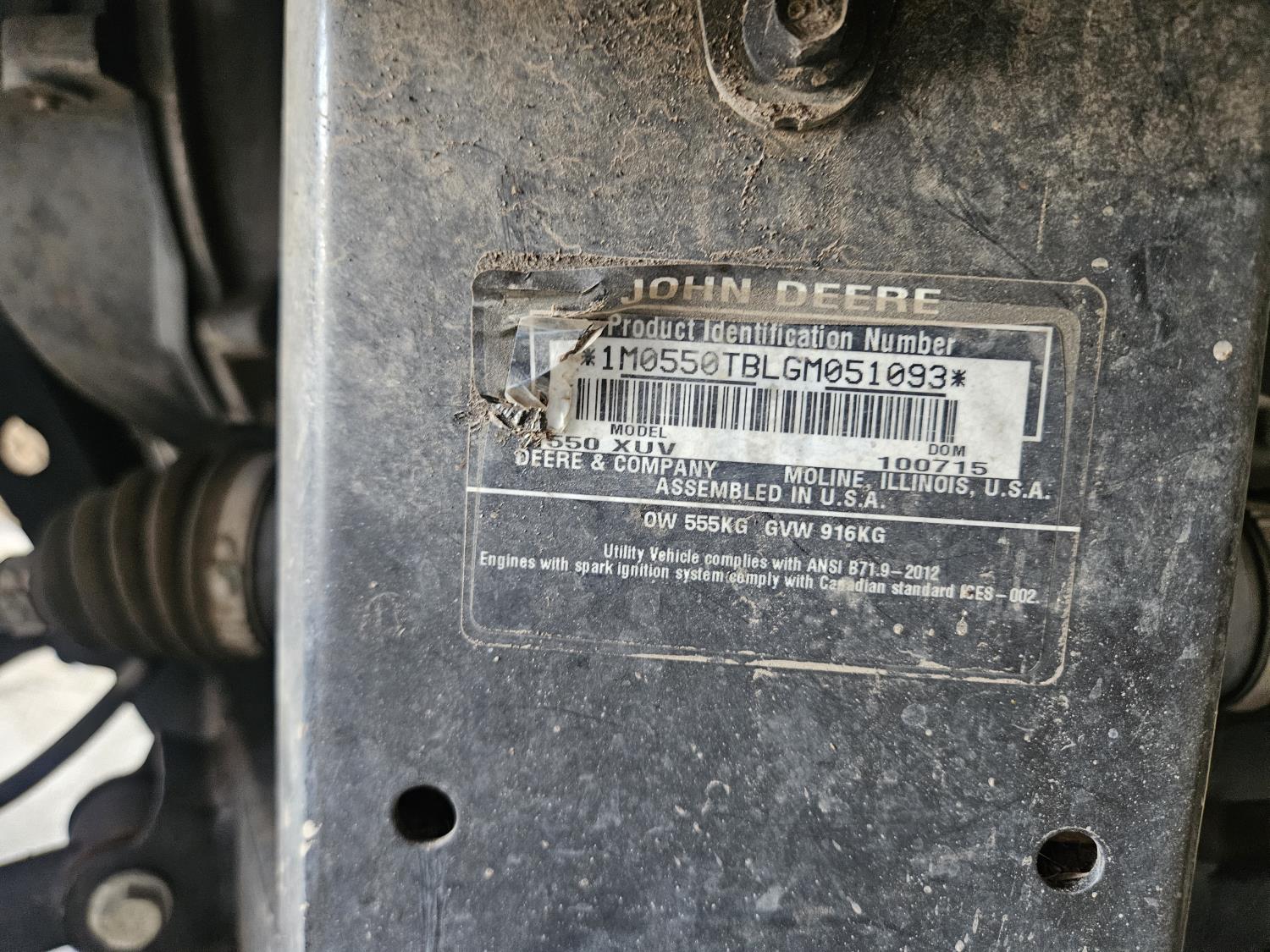 1386 2016 John Deere 550 XUV Gator 4X4 Side By Side