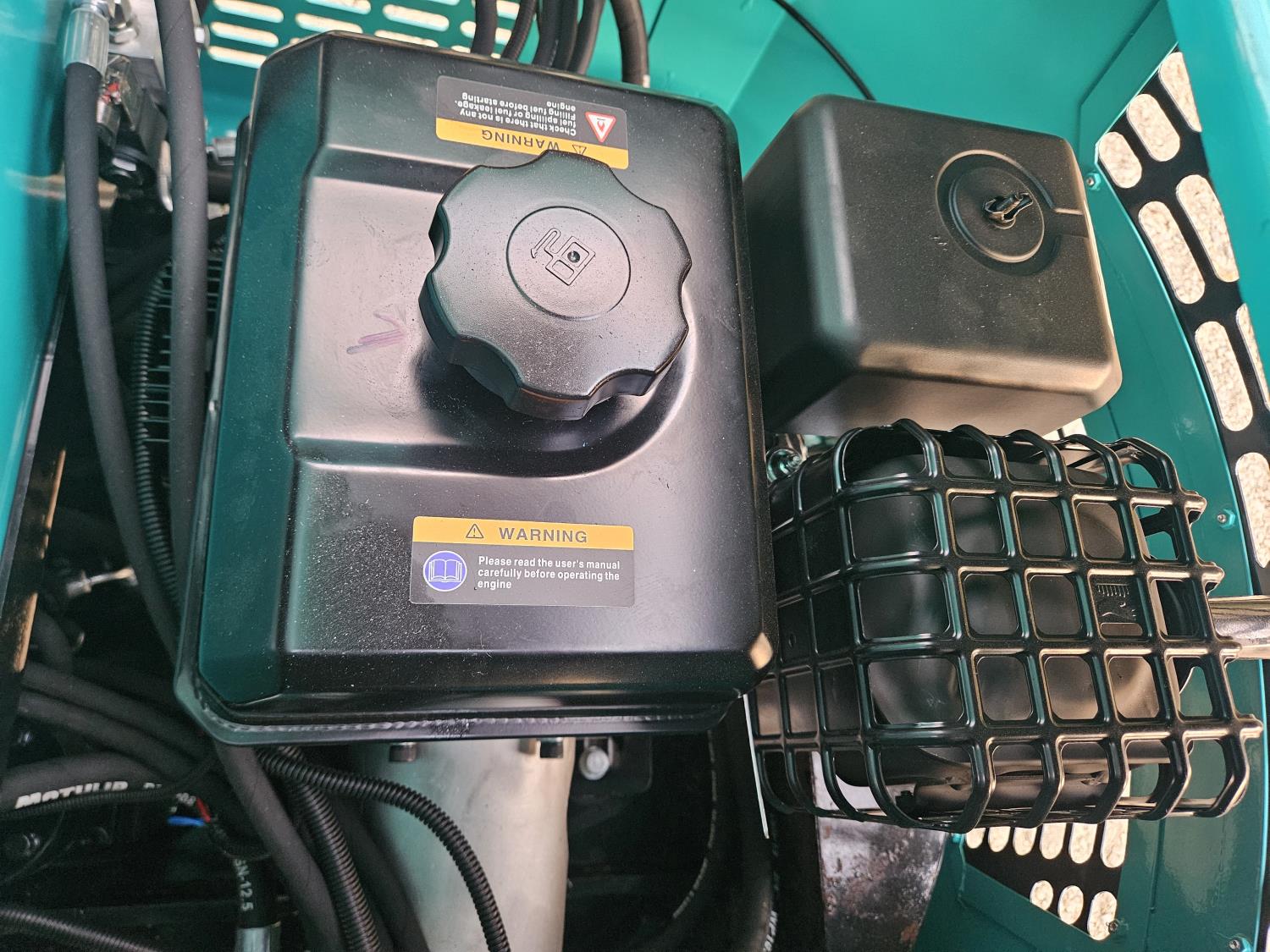 Open station, 420cc gas engine, 16 inch dig bucket, manual thumb, 32 inch stick, backfill blade, 7 inch rubber tracks