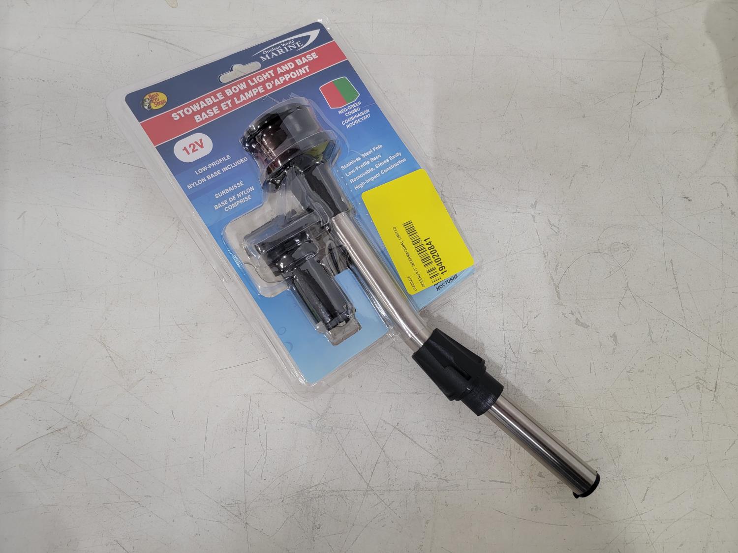 pivoting navigational light, (2) belts, stowable bow light, fishing accessories, picture frame, fly fishing rod