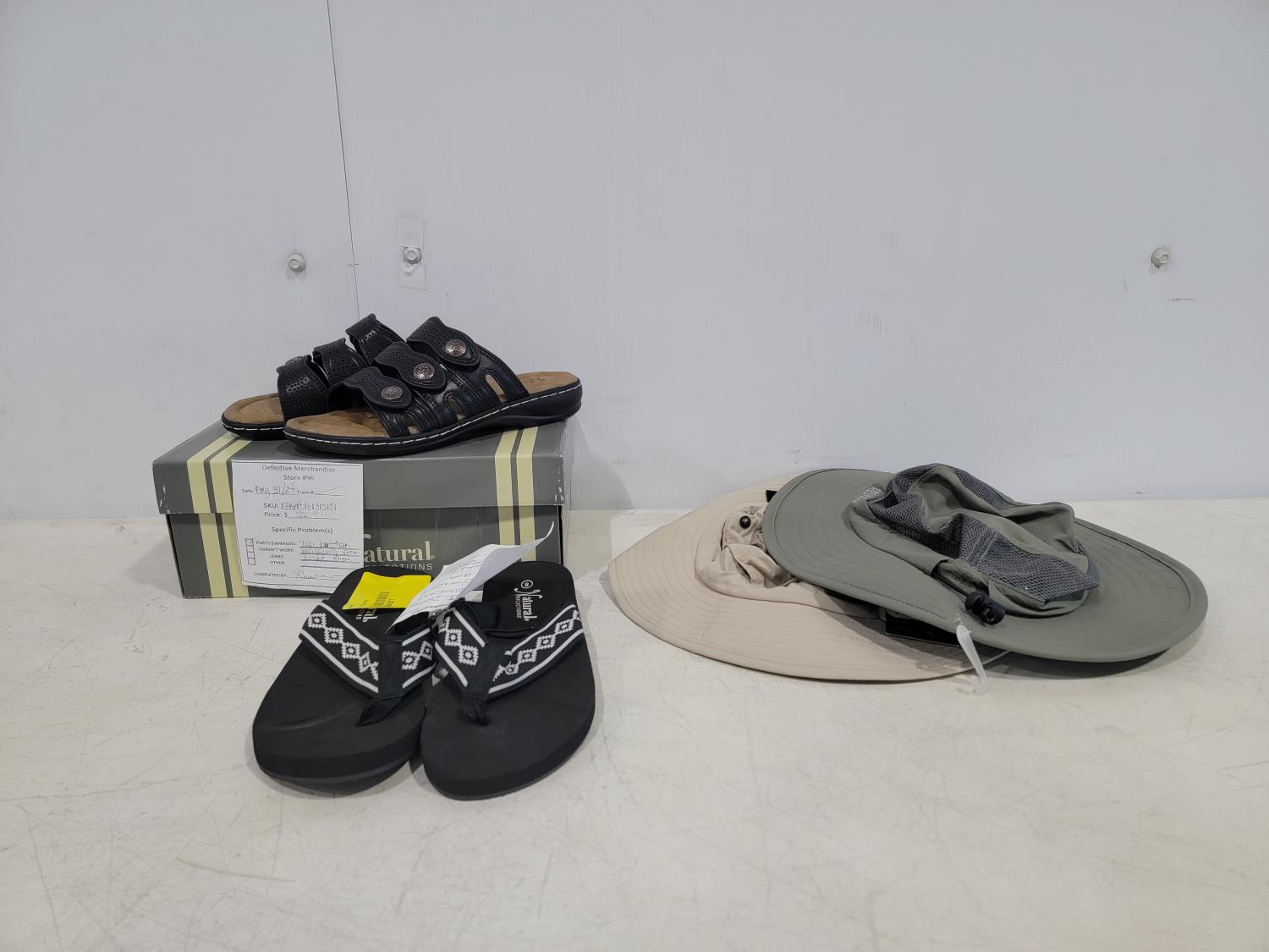 1188 Natural Reflections Cami II Size 7M Sandals, Size 8 Sandals and (2) Hats