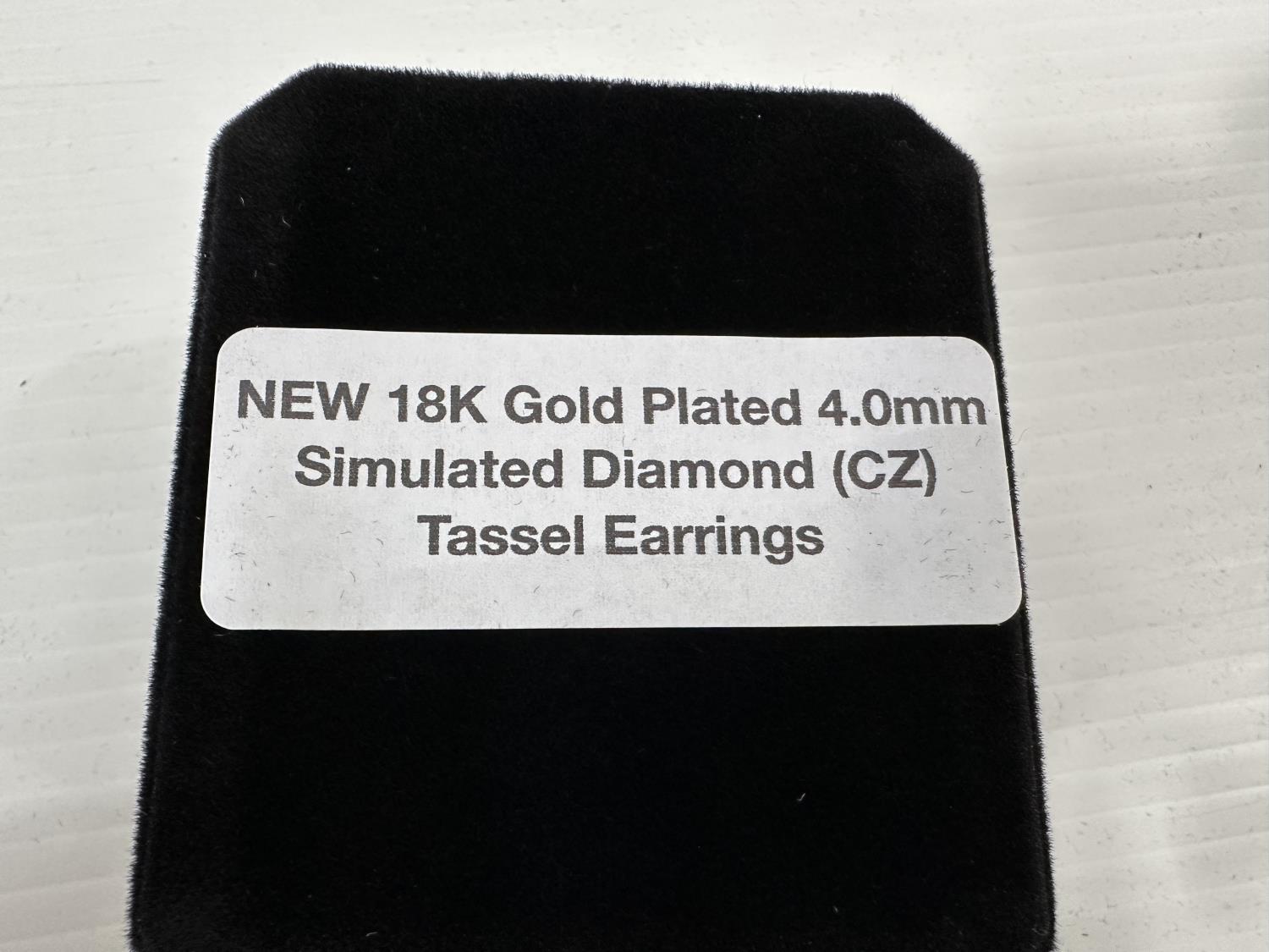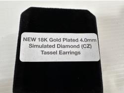 1239 Smartlife 18K Gold Plated 4.0 mm Simulated Diamond (CZ) Tassel Earrings (Unused)