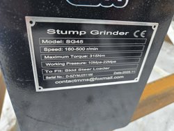2026 GIYI SG45 Hydraulic Skid Steer Stump Grinder (Unused)