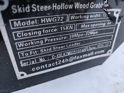 2026 GIYI HWG72C 72 Inch Hydraulic Skid Steer Wood Grapple (Unused)