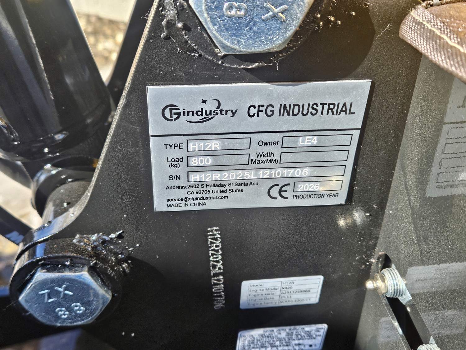 Open station, 420 cc gas engine, 16 inch dig bucket, manual thumb, 2 Ft 8 inch stick, backfill blade, 7 inch rubber tracks