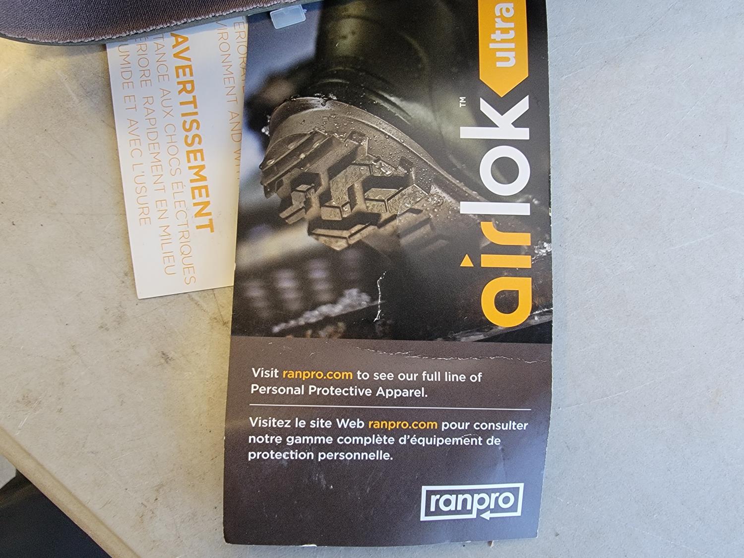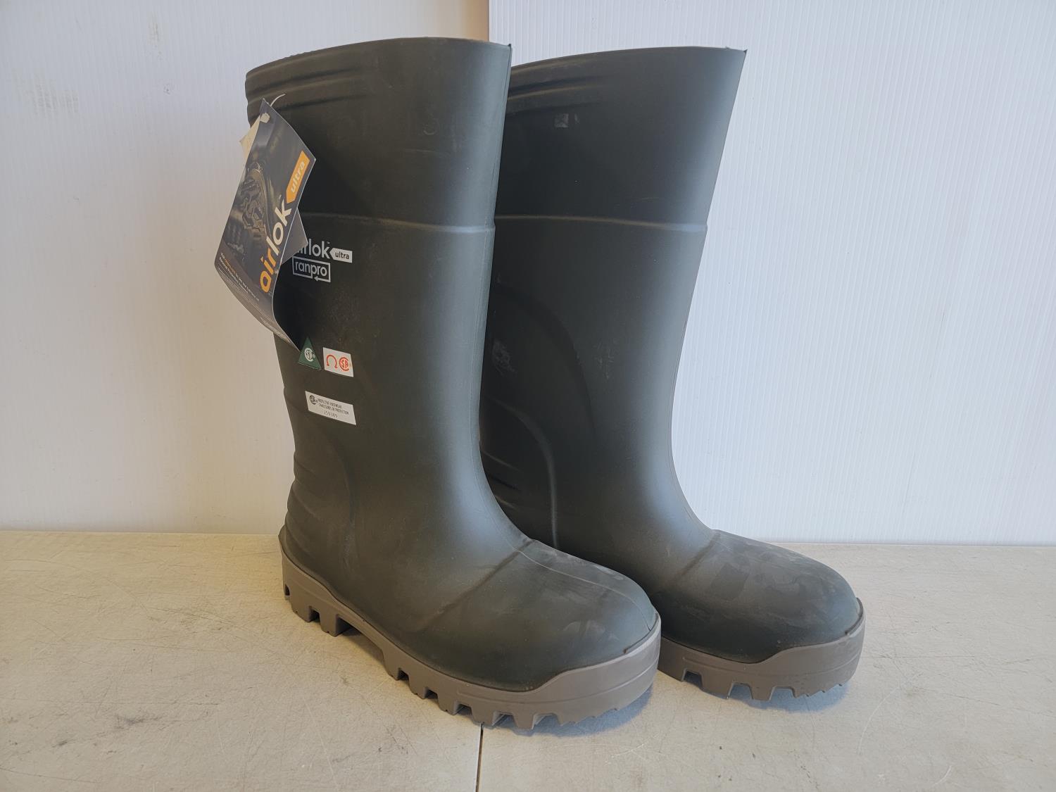 5082 (8) Neck Gaiters, 1 Inch X 50 Yard Roll of Abrasive Cloth and Size 9 Steel Toe Rubber Boots (Unused)