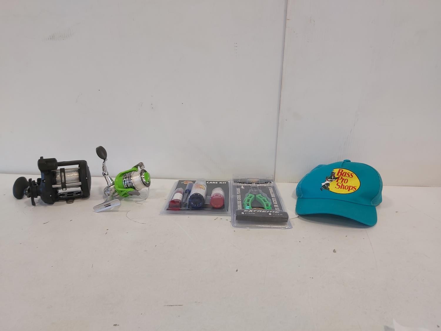 5151 Depthmaster Multiplier Reel, Tourney Special Spinning Reel, Reel Care Kit, Pliers and Hat