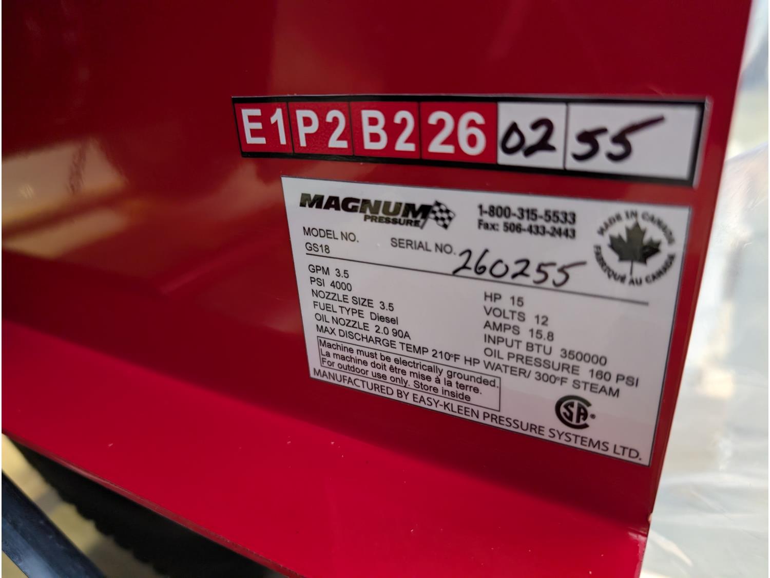 3.5 GPM at 4000 PSI, 15 HP, gasoline engine, electric start, 12 volt burner, oil/diesel fired burned/thermostat, schedule 80 coil with stainless steel housing, fully welded, powder coated frame, 10 gallon poly fuel tank, 30' hose and wand