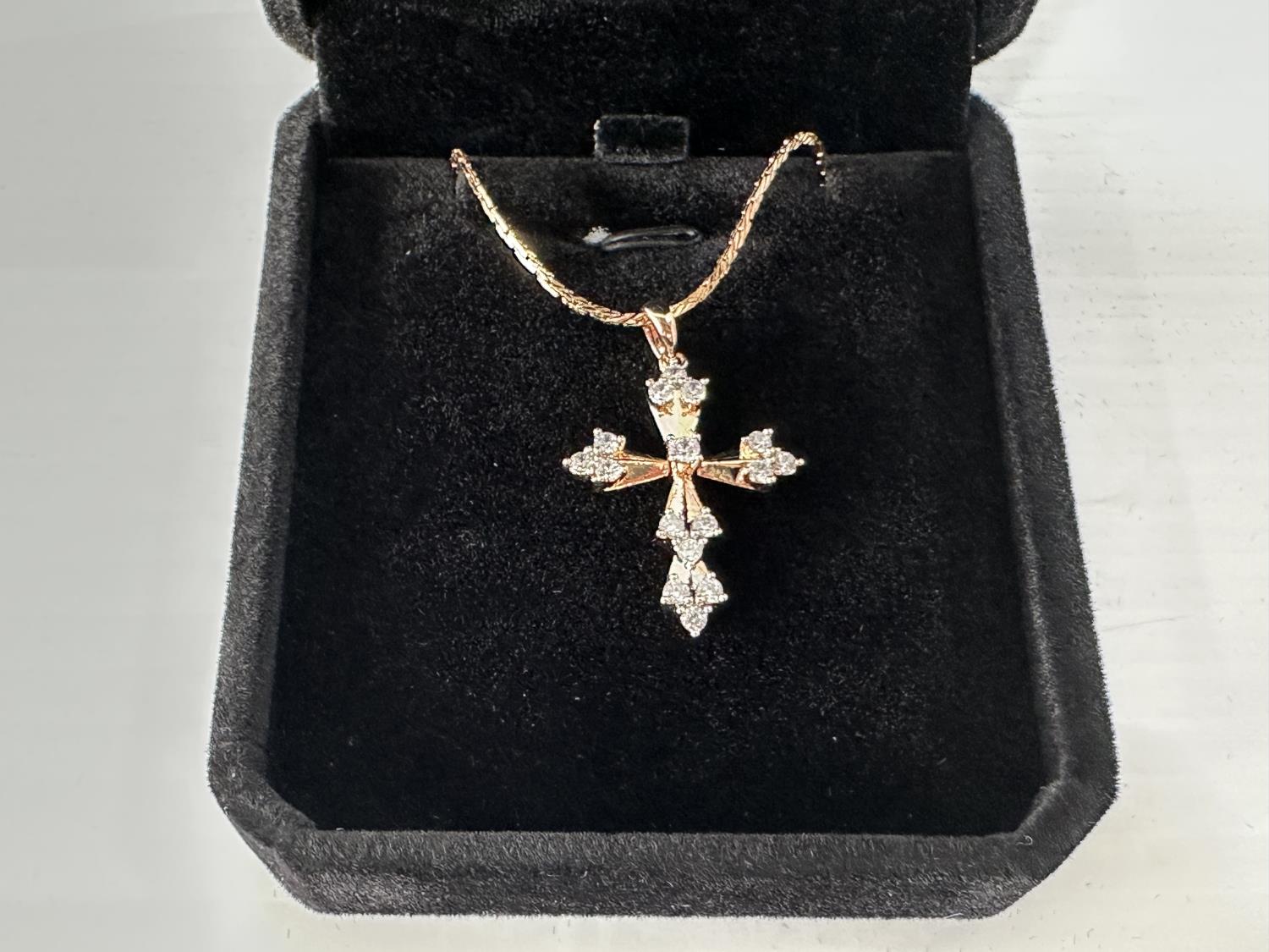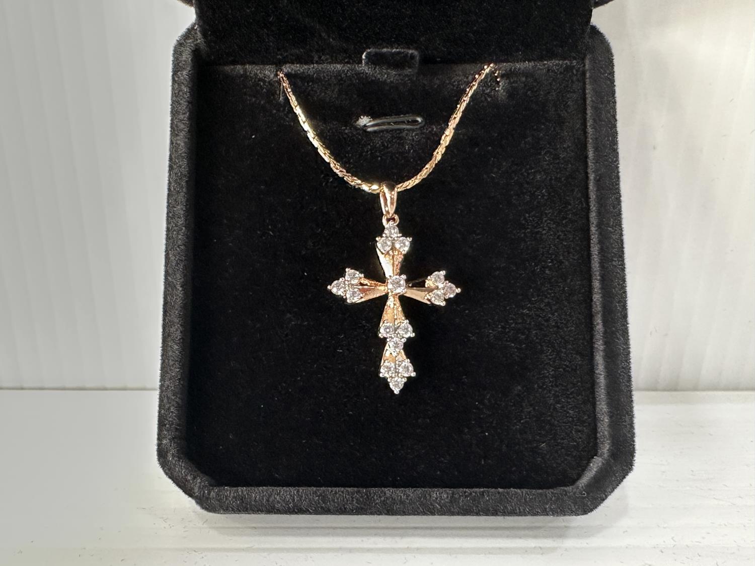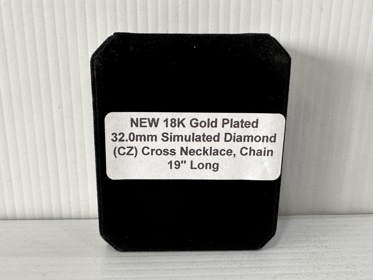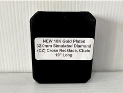 5023 Smartlife 18K Gold Plated 32.0 mm Simulated Diamond (Cz) Cross Necklace (Unused)