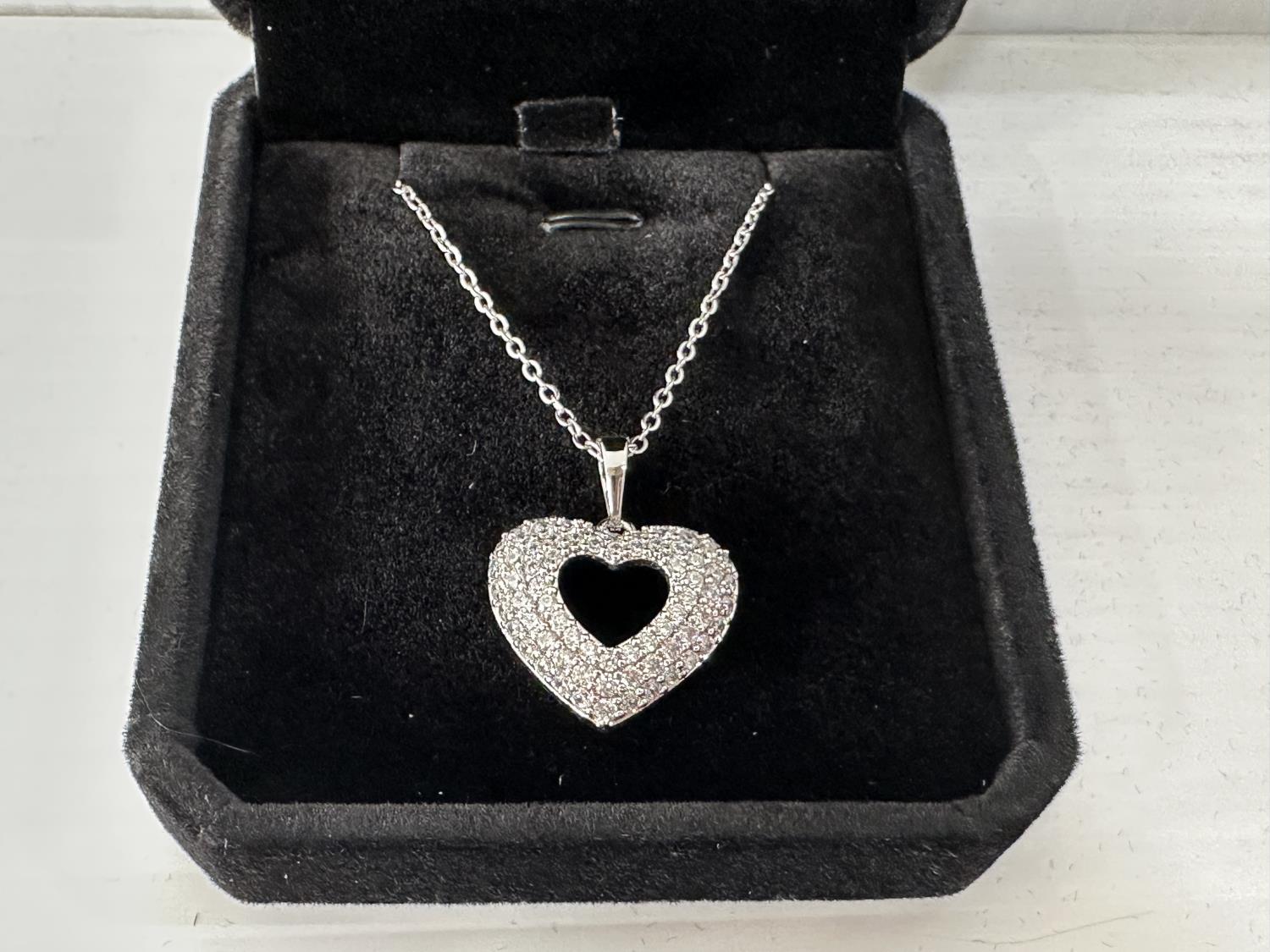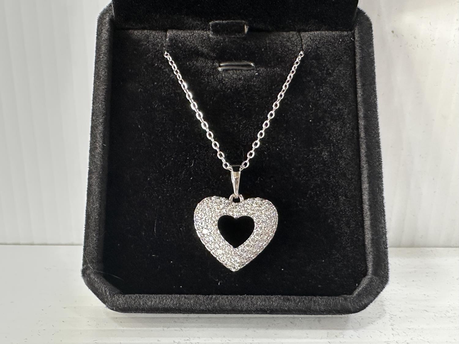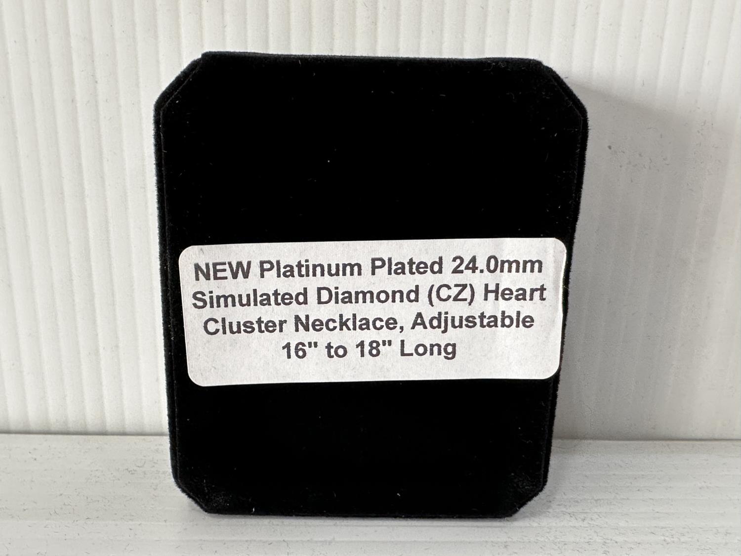 5026 Smartlife Platinum Plated 24.0 mm Simulated Diamond (Cz) Heart Cluster Necklace (Unused)