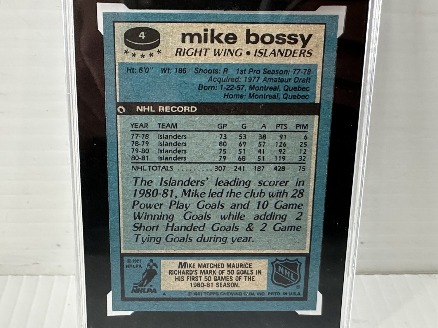 1981-82 Topps #4 Mike Bossy, Grade 8 - (NMM) Near Mint to Mint