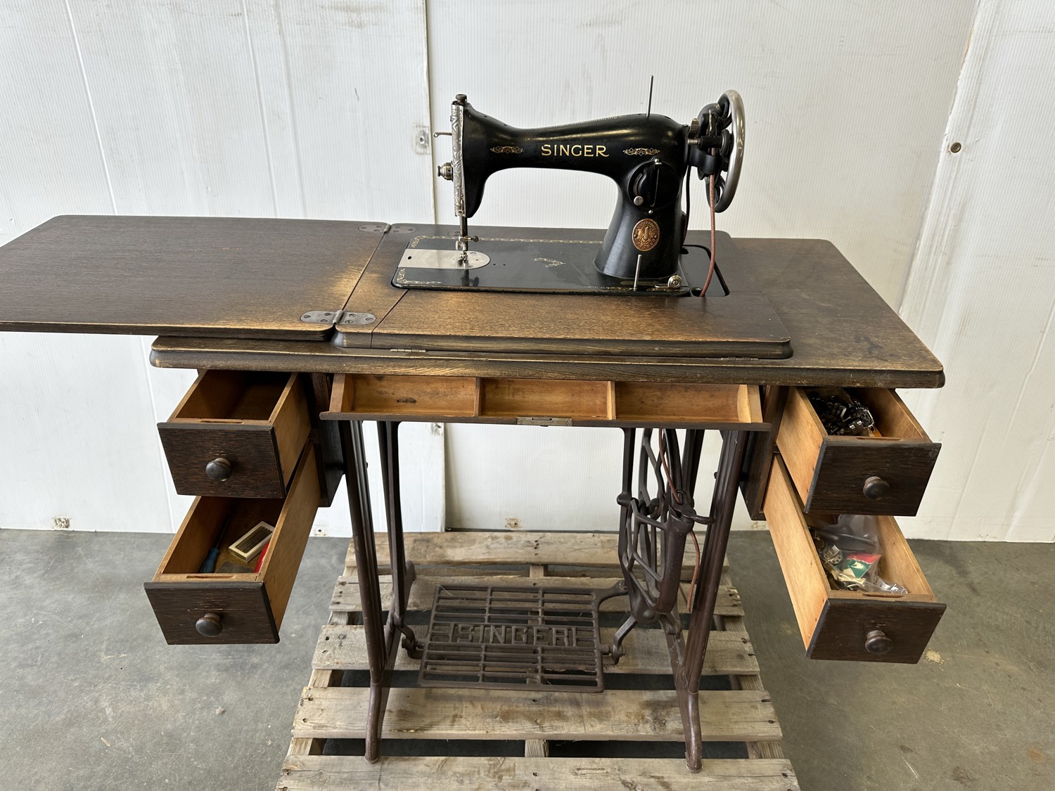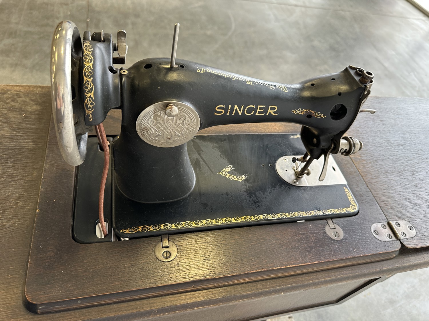 Antique Singer Sewing Machine in Cabinet