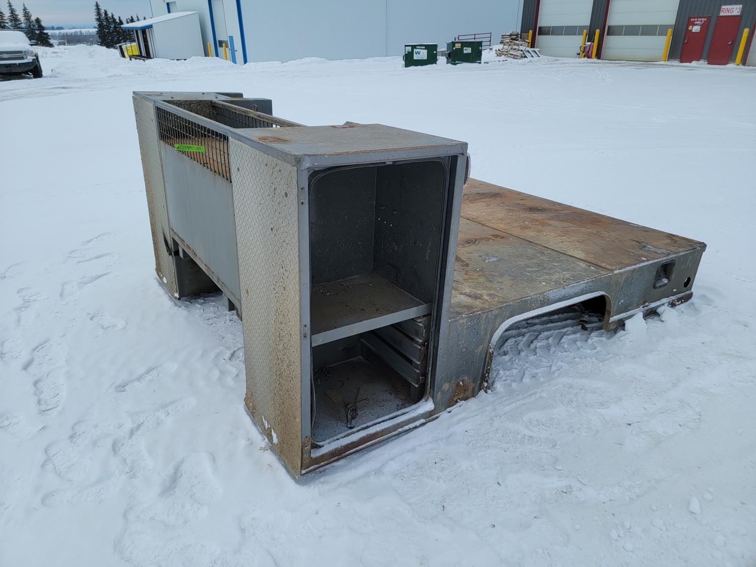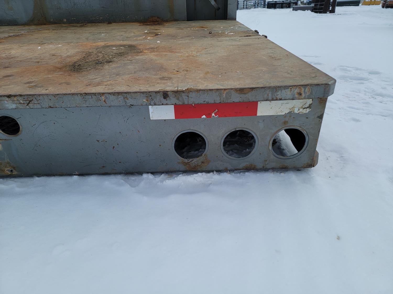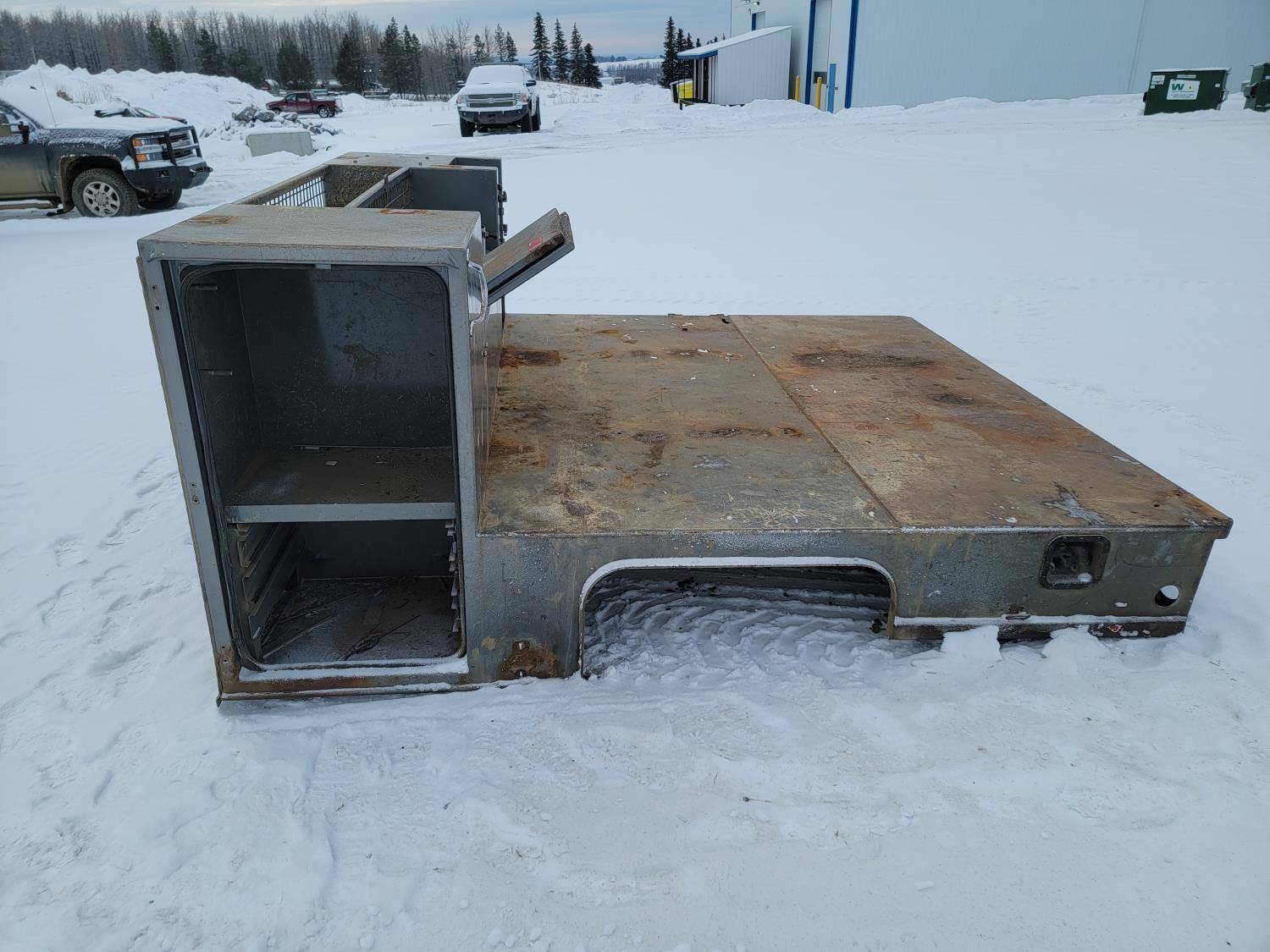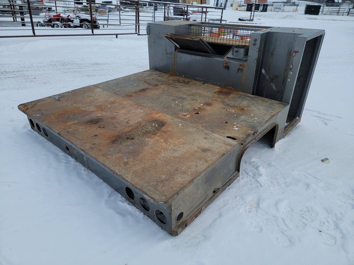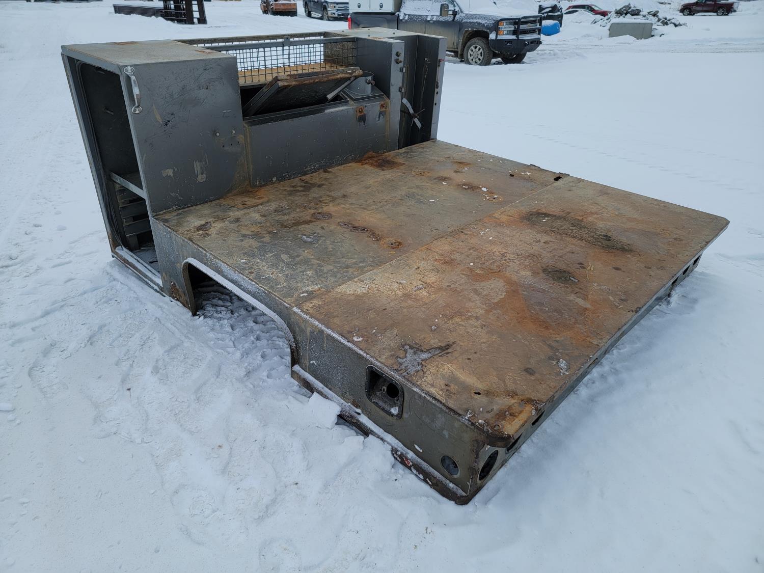 deck 96 inch w x 112 inch l, side tool boxes 28 inch w x 24 inch d x 49-1/2 inch h