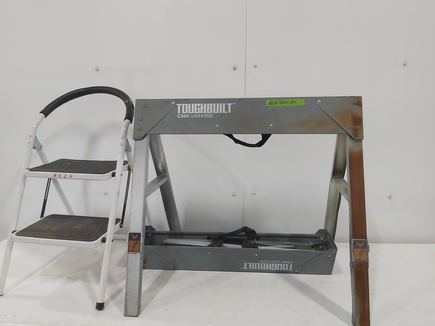1058 (2) Toughbuilt Metal Sawhorses and Two-Step Ladder