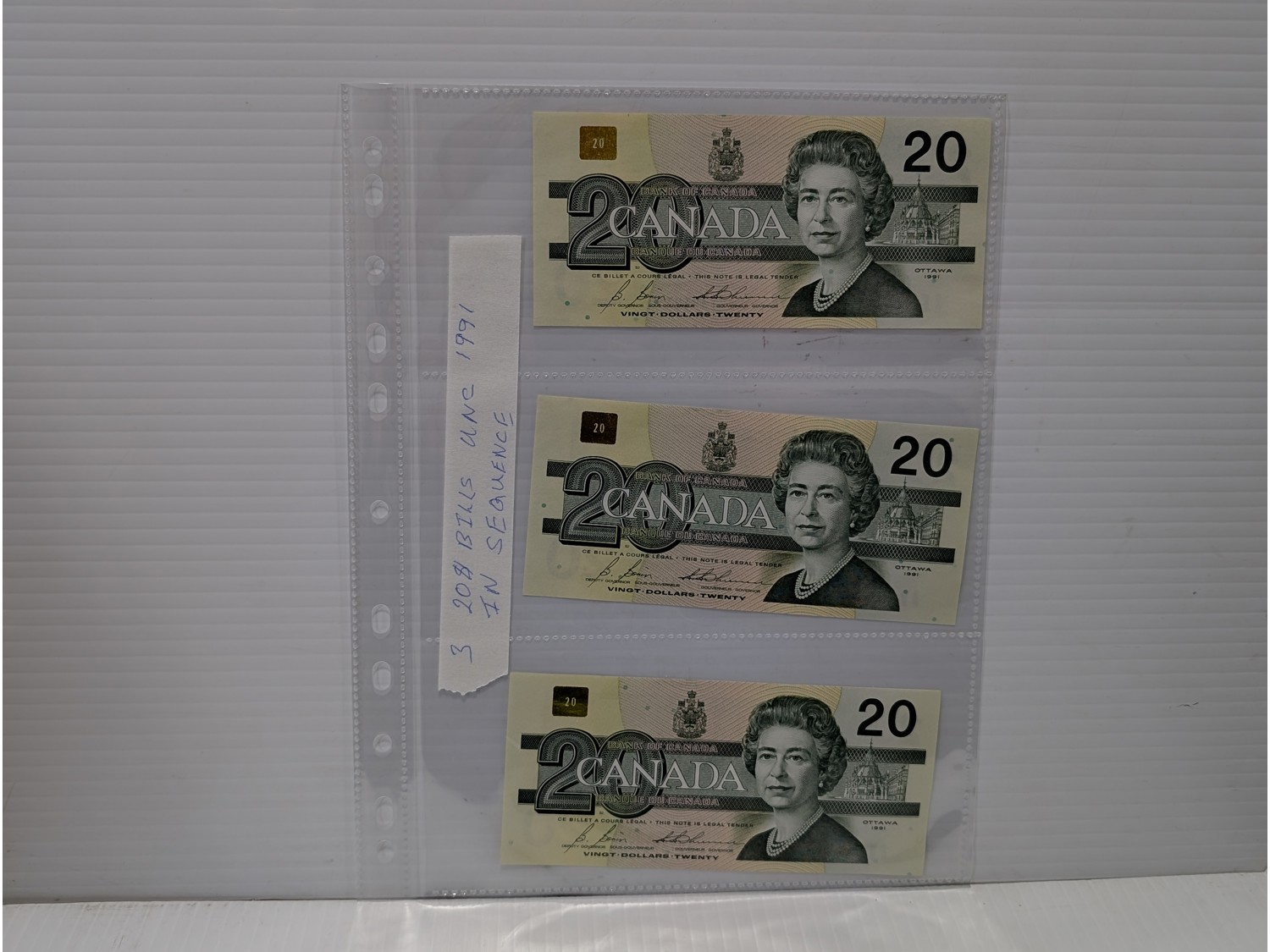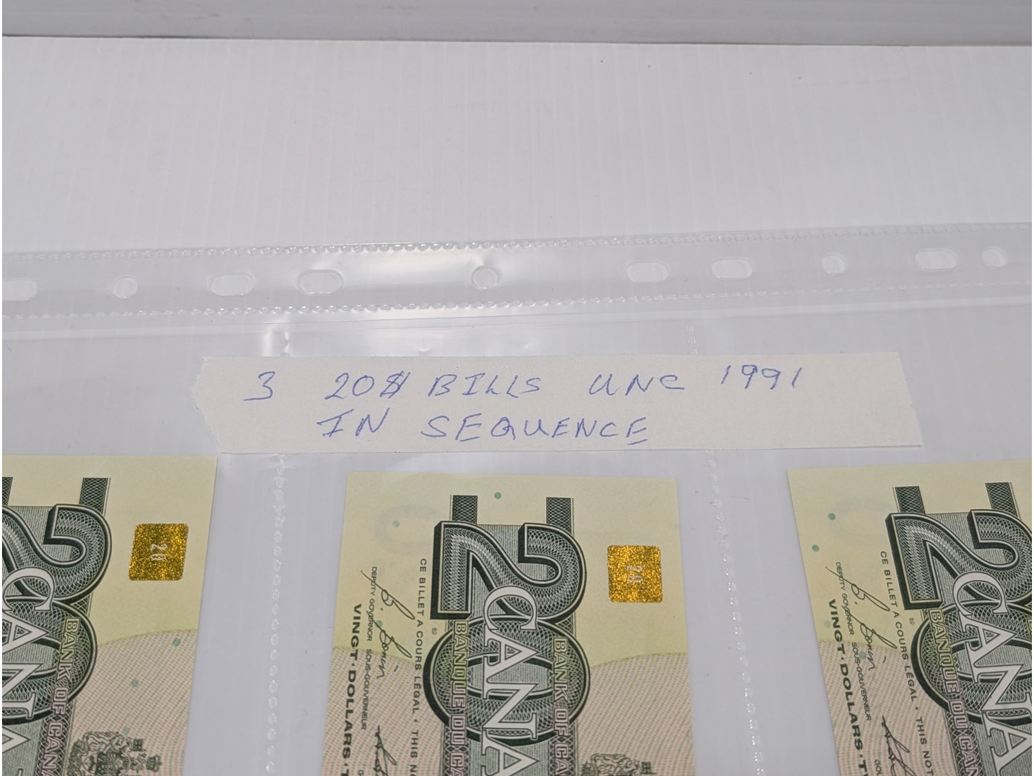 1519 (3) 1991 Uncirculated Twenty Dollar Bills in Sequential Order