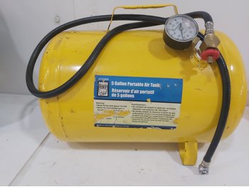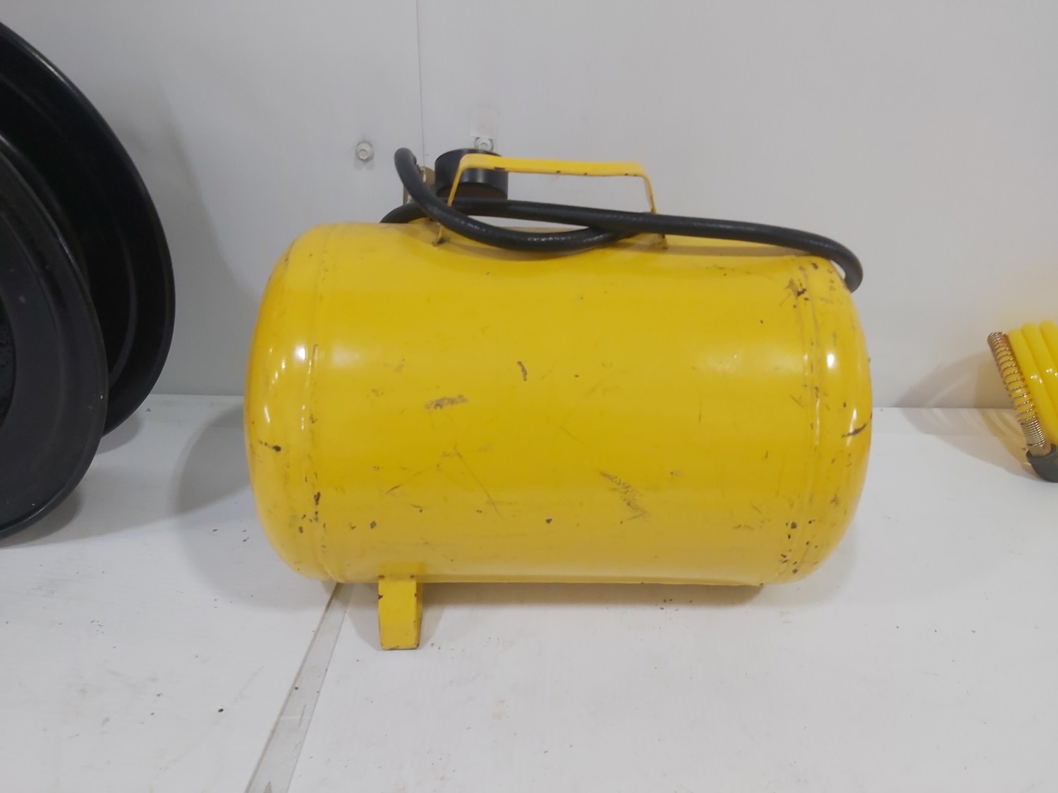 1198 Powerfist 5 Gallon Portable Air Tank, (2) Air Hoses and Hose Reel