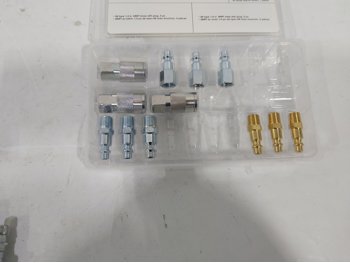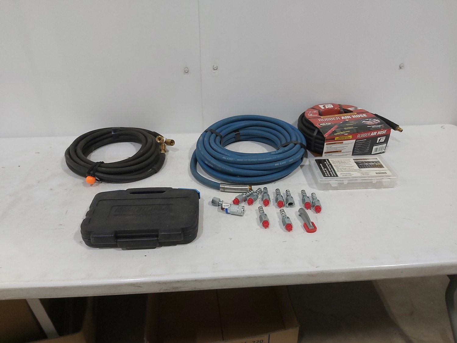 1054 Qty of Air Compressor Connectors, Hoses and Channel Lock 16 Piece Socket Set