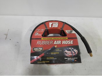 3/8 inch x 50 ft rubber air hose (unused), 1/2 inch rubber water hose, 3/8 inch rubber air hose