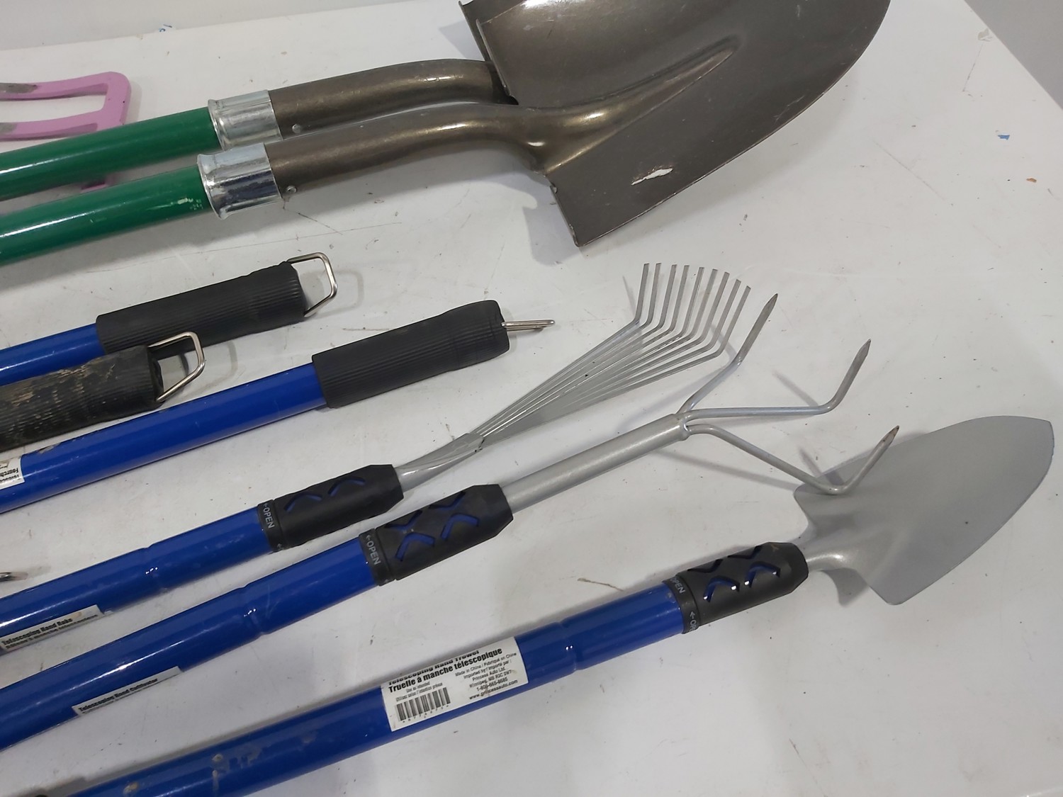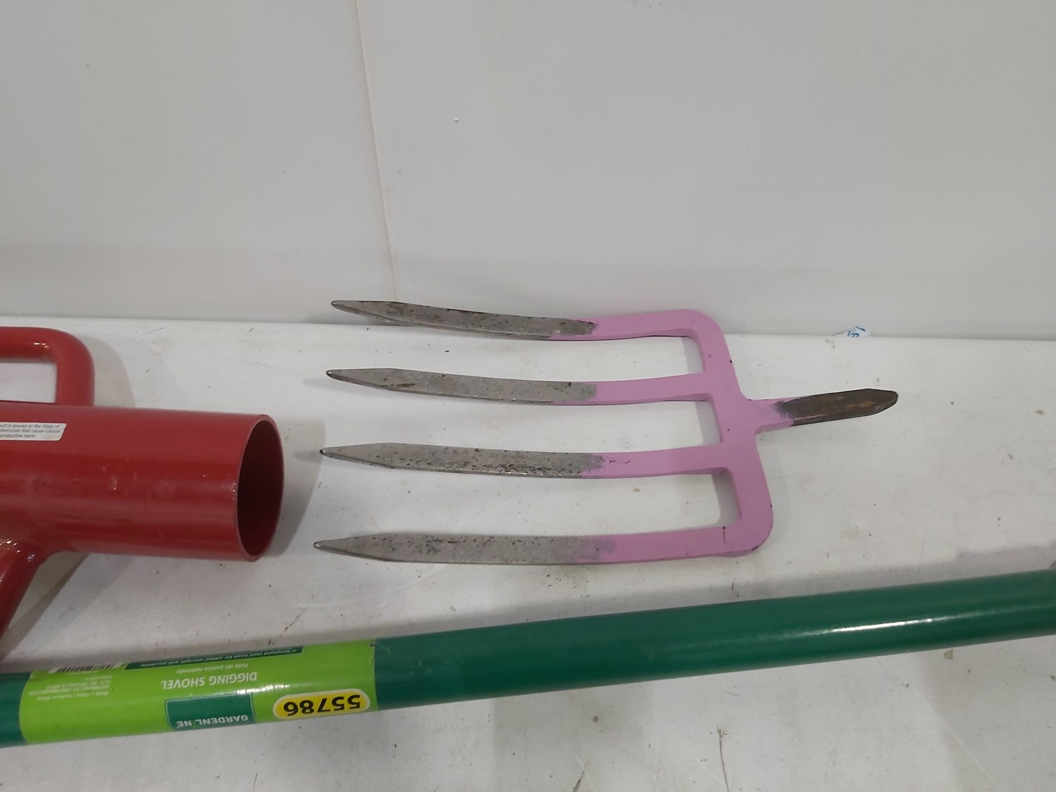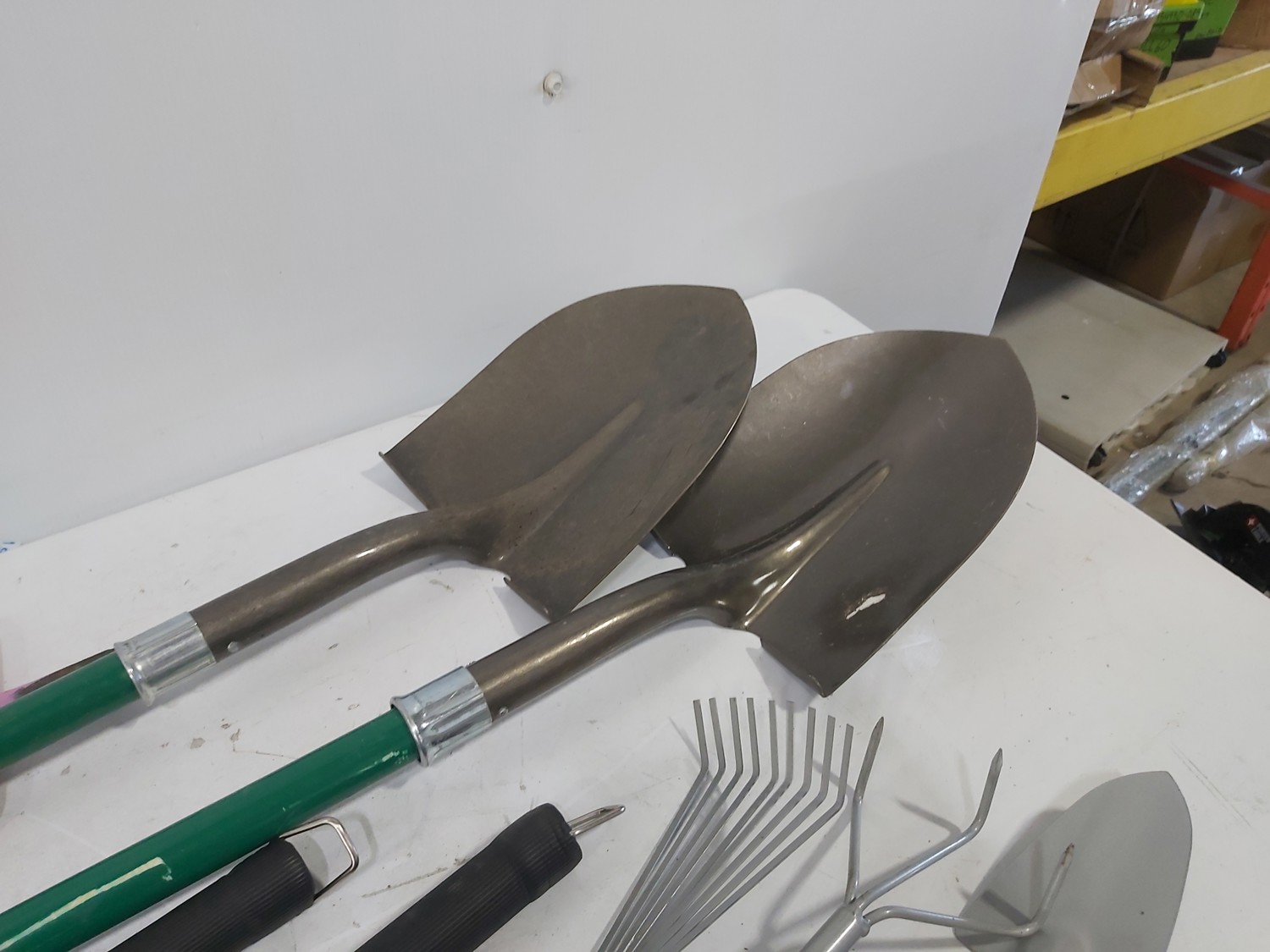 1040 Qty of Gardening Tools, Spades and Post Pounder (Unused)