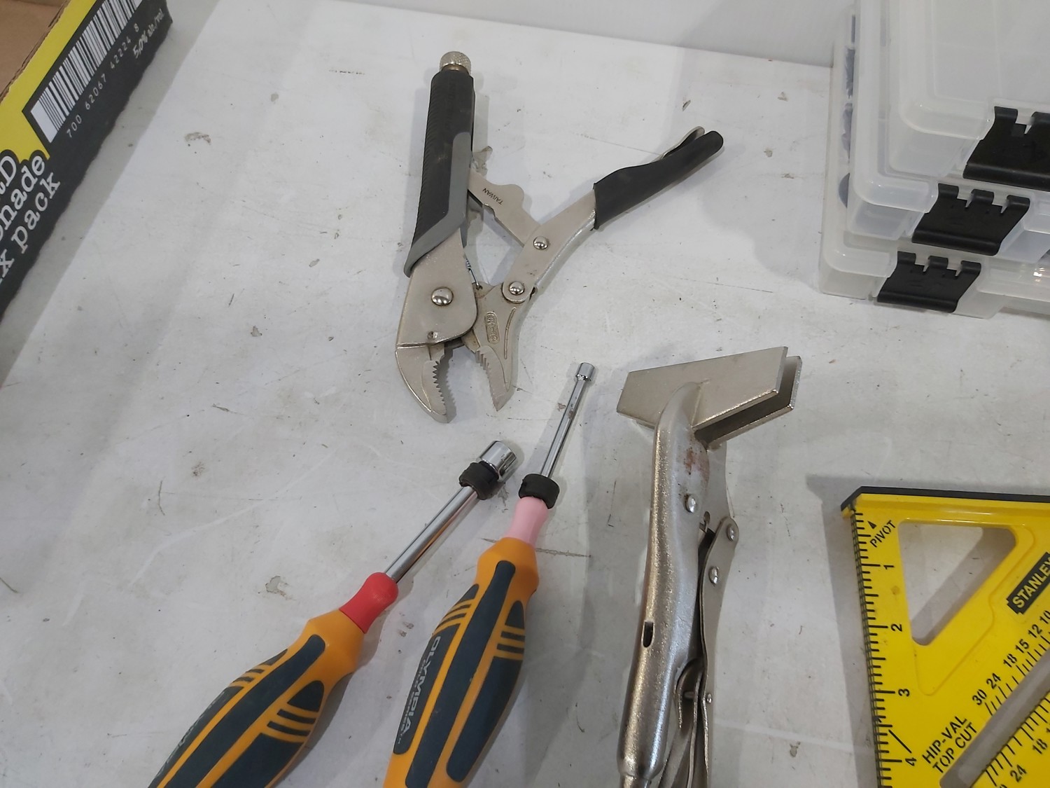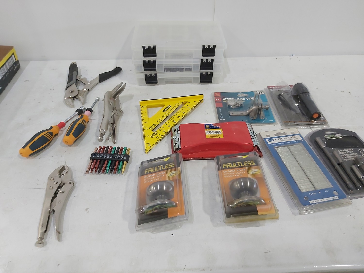 1050 Qty of Hand Tools, Hardware and Freeman 1 Inch Air-Powered Nail Gun