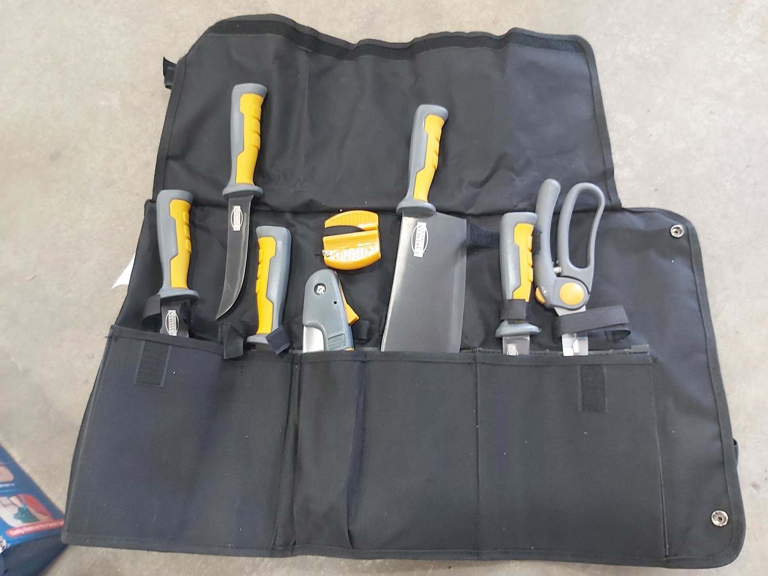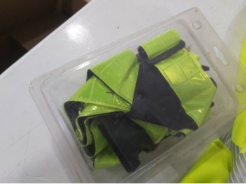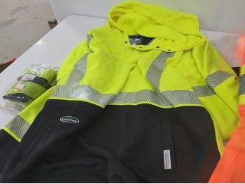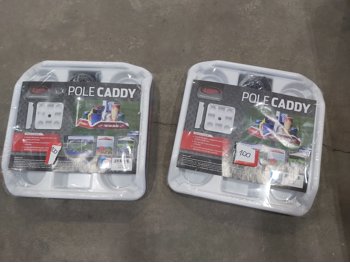 (2) pole caddy organizers, Yamaha foot pedal, drumsticks, golf bag, Eastman butcher set, sck sliders, hi-vis safety wear
