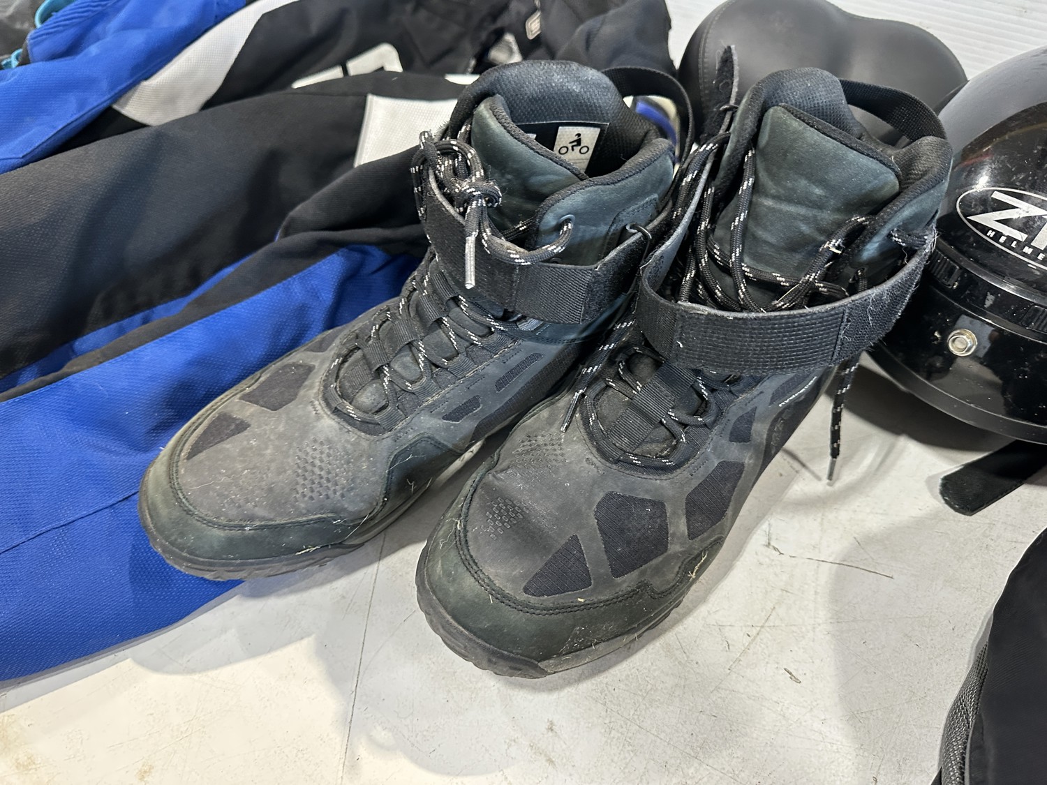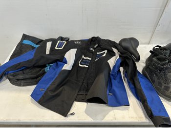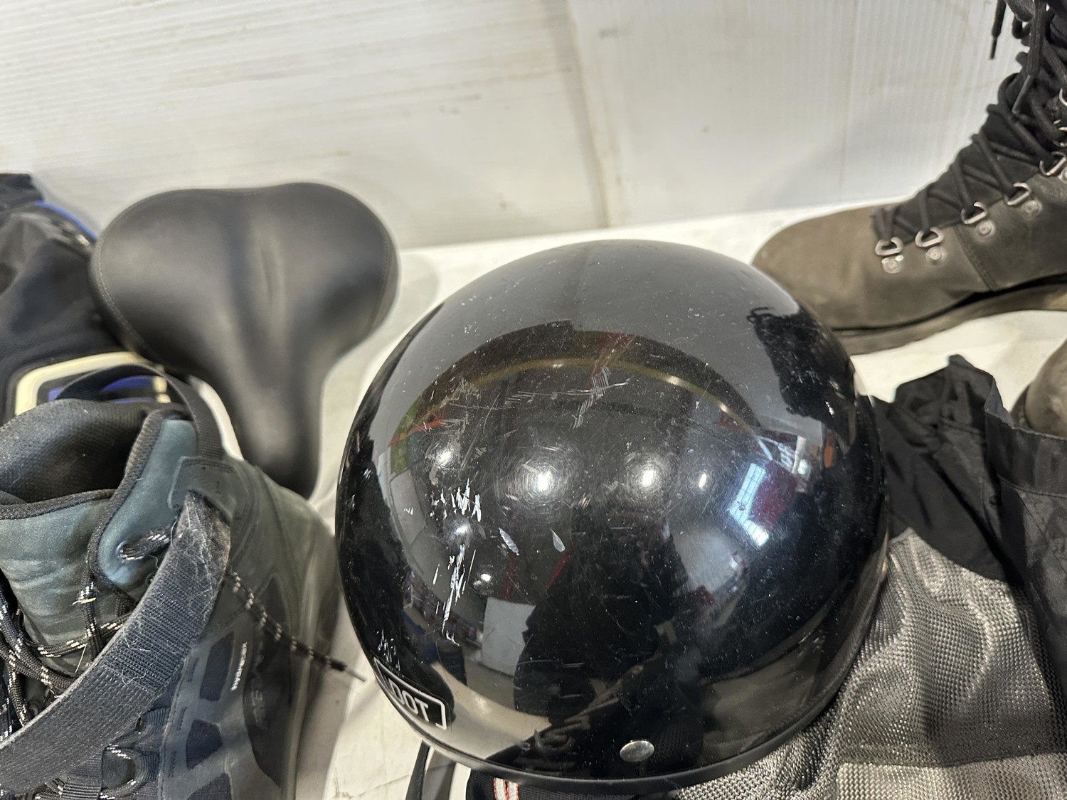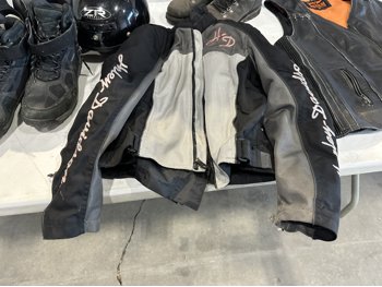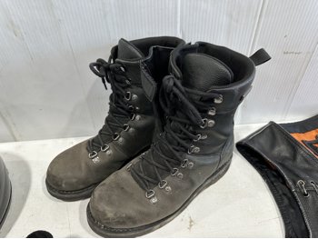 3XL vest, size 8-1/2 M Harley-Davidson boots, size 10 boots, Harley-Davidson jacket (size unknown), size XS helmet, Shift size XXL jacket