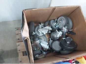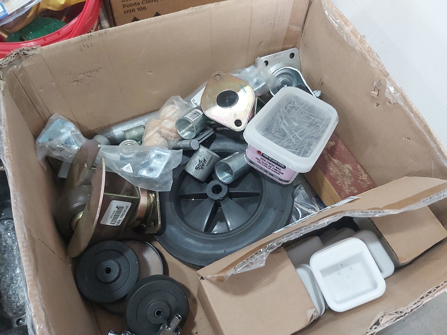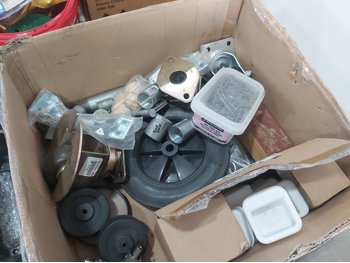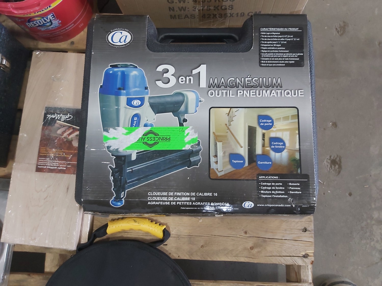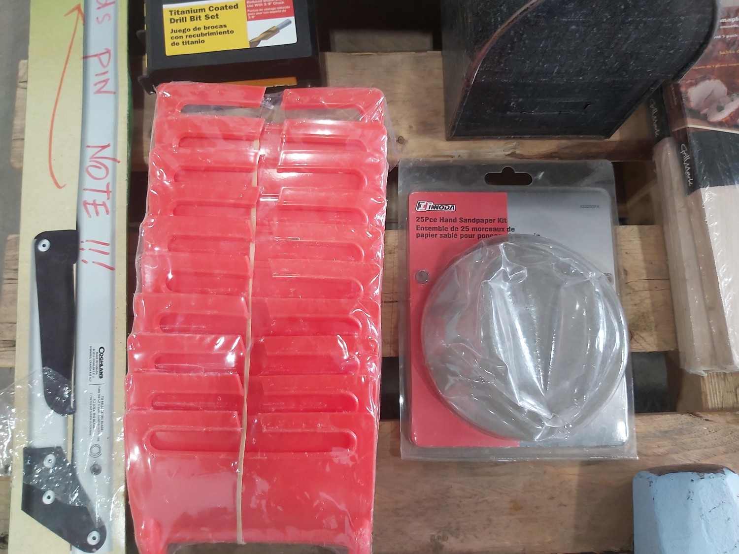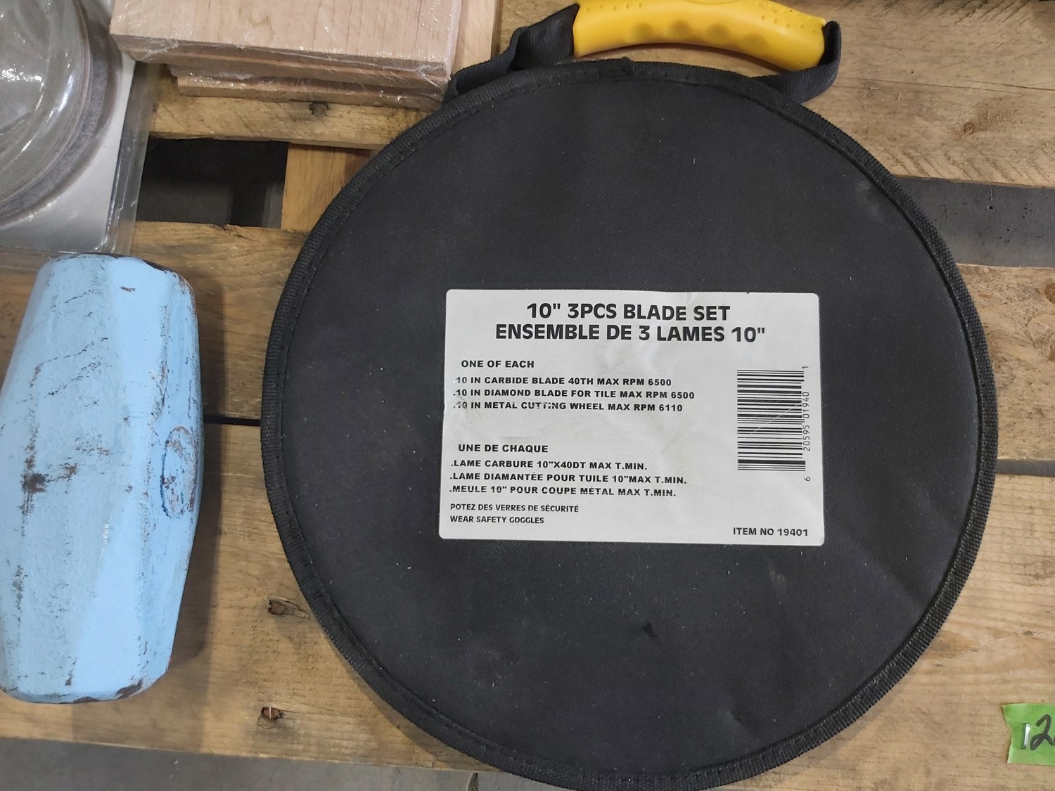 4 inch bench vise, 3-in-1 Magnesium air tool, 10 inch blade set, Titan drill bit set, dolly wheels, metal lunch box, corner web protectors, hardware