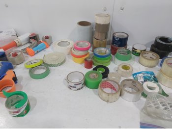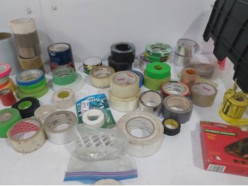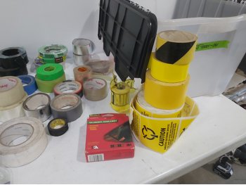 1181 Qty of Tape, Latex Gloves, (2) Rubber Mats and Plastic Tote