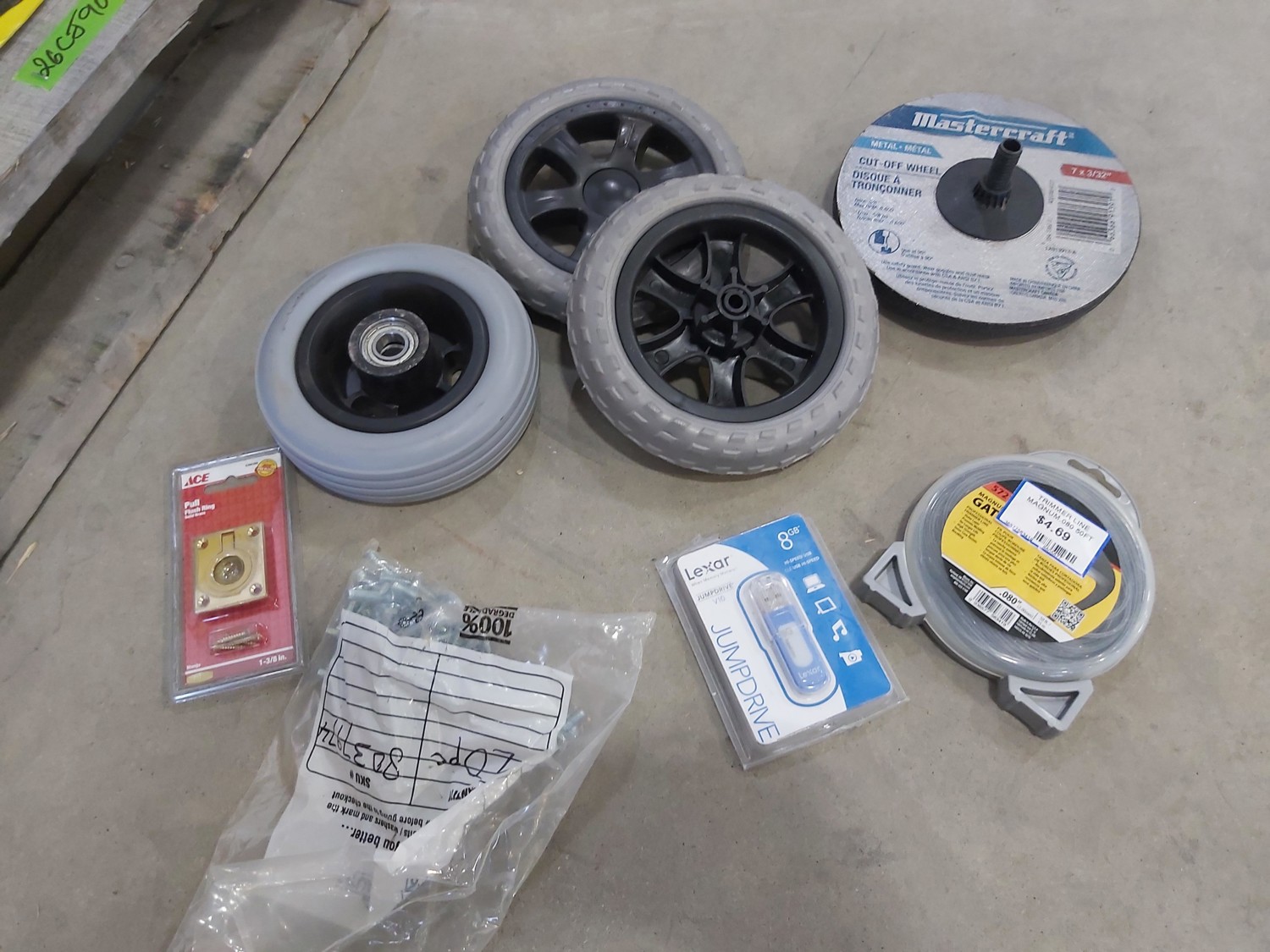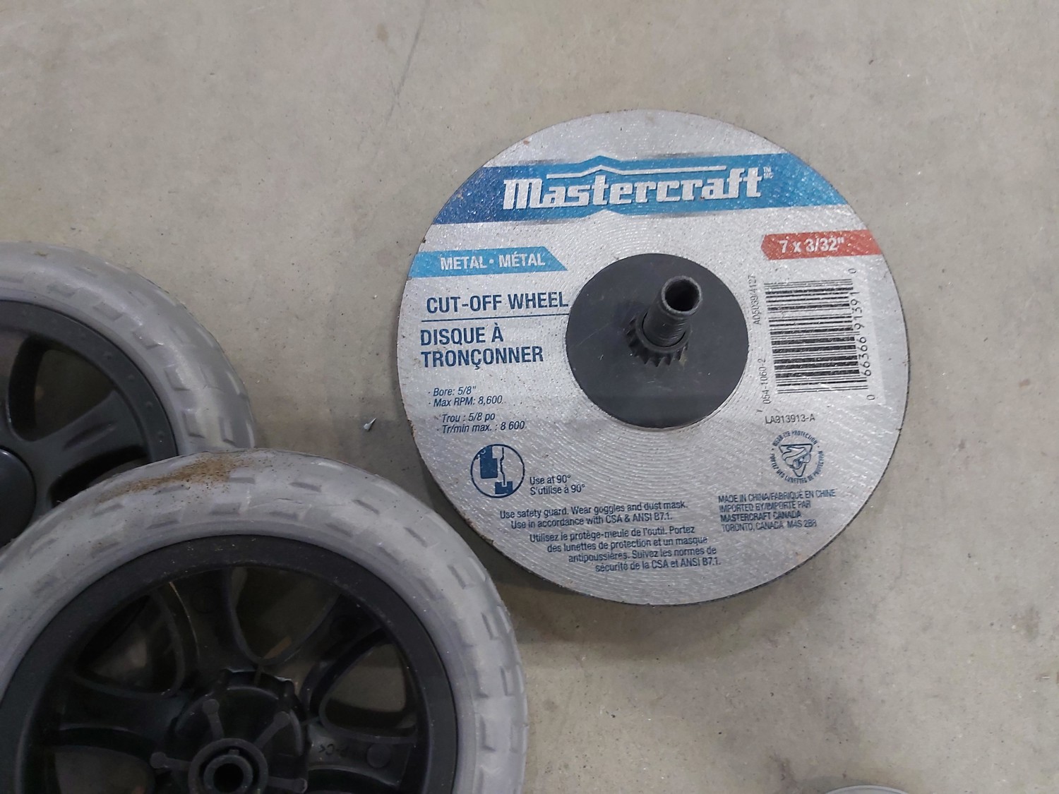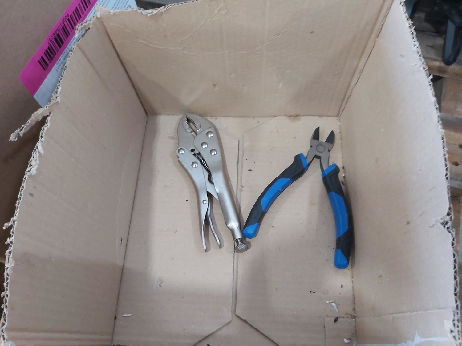 jack-all, 26 inch hand saw, chisel set, (3) 10 inch cut-off blades, 2-1/2 inch DeWalt connector nails, DeWalt driver set, air powered riveter