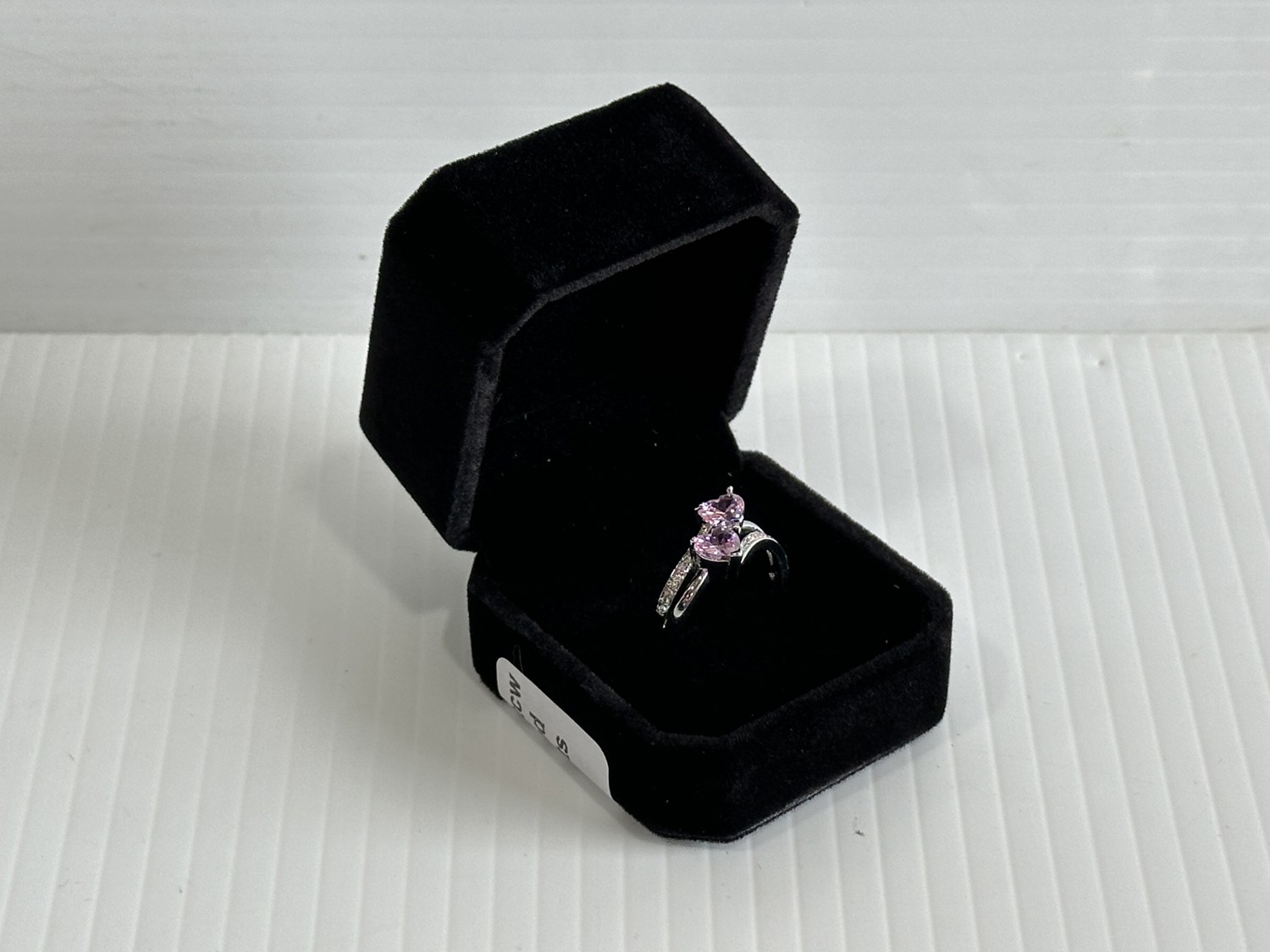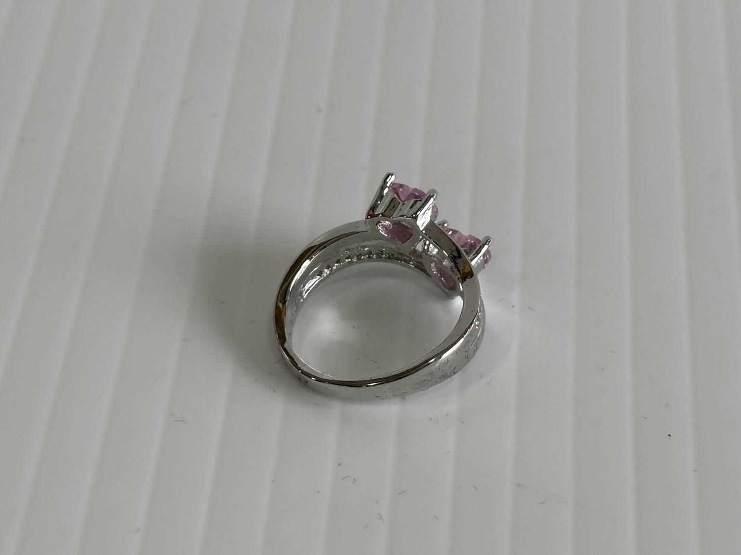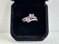 Smartlife Platinum Plated 1.0tcw Heart Cut Pink Simulated Diamond (Cz) Two Hearts Ring (Unused)