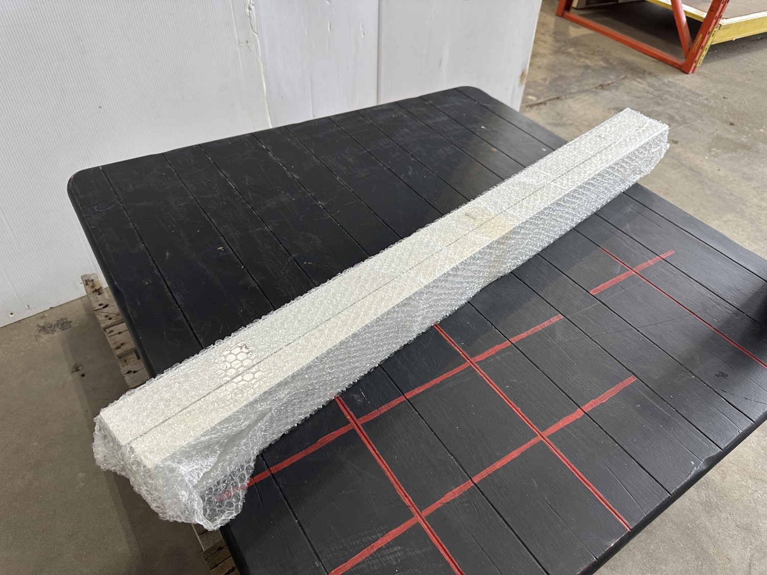 1313 Wooden Table and (2) 44 Inch Long Shelves