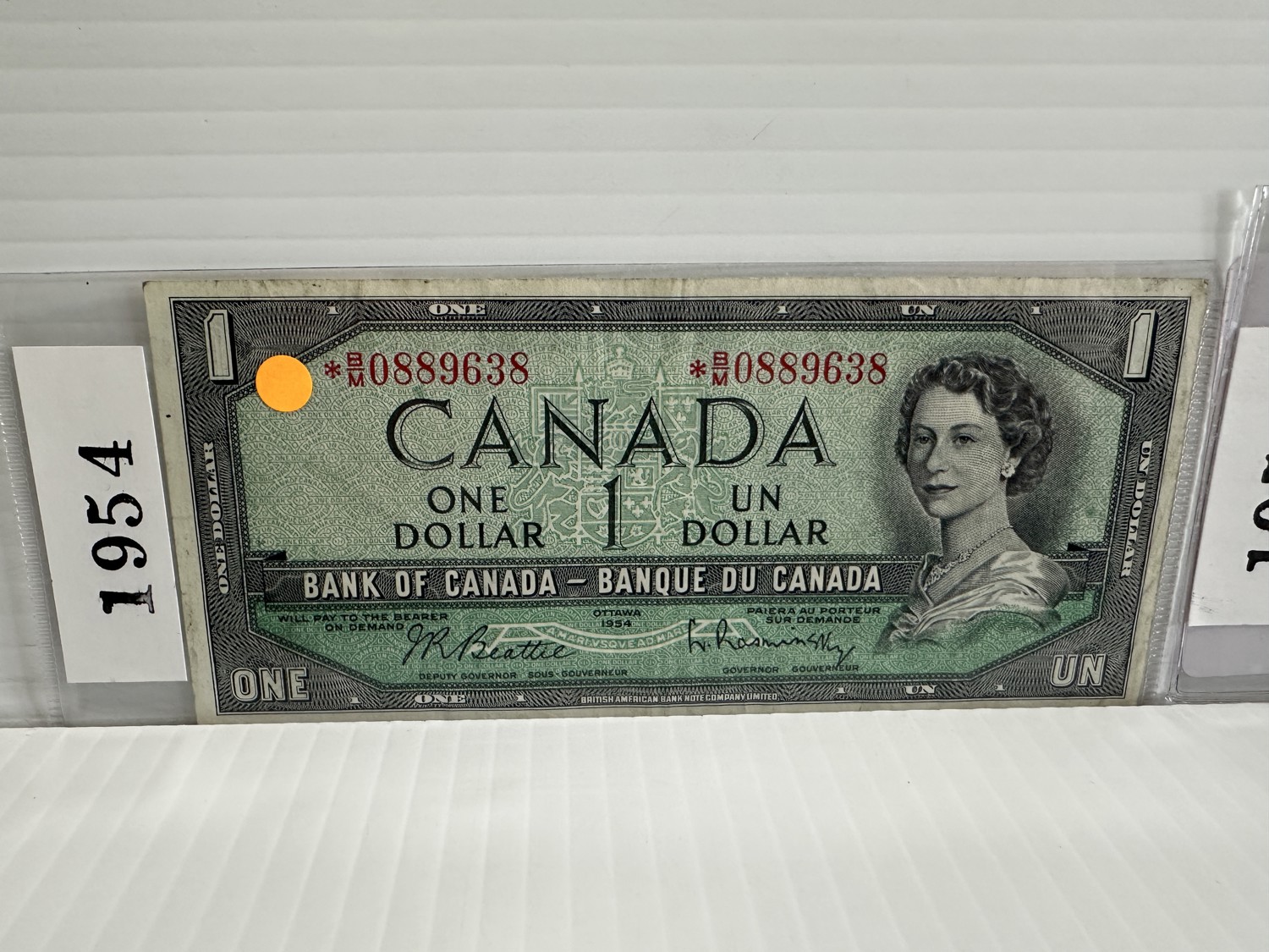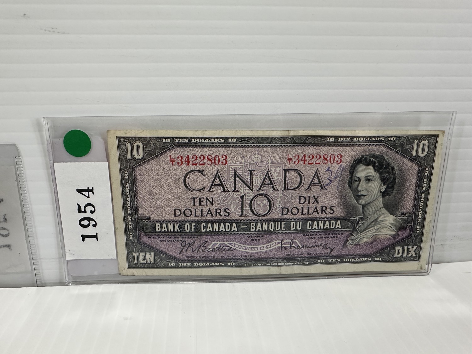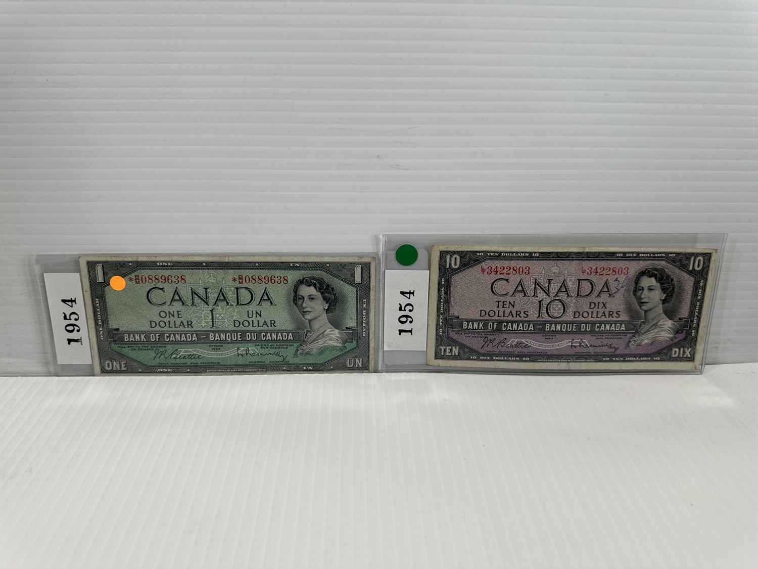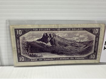 (1) 1954 Canadian One Dollar Bill and (1) 1954 Canadian Ten Dollar Bill