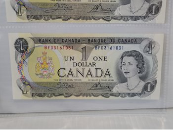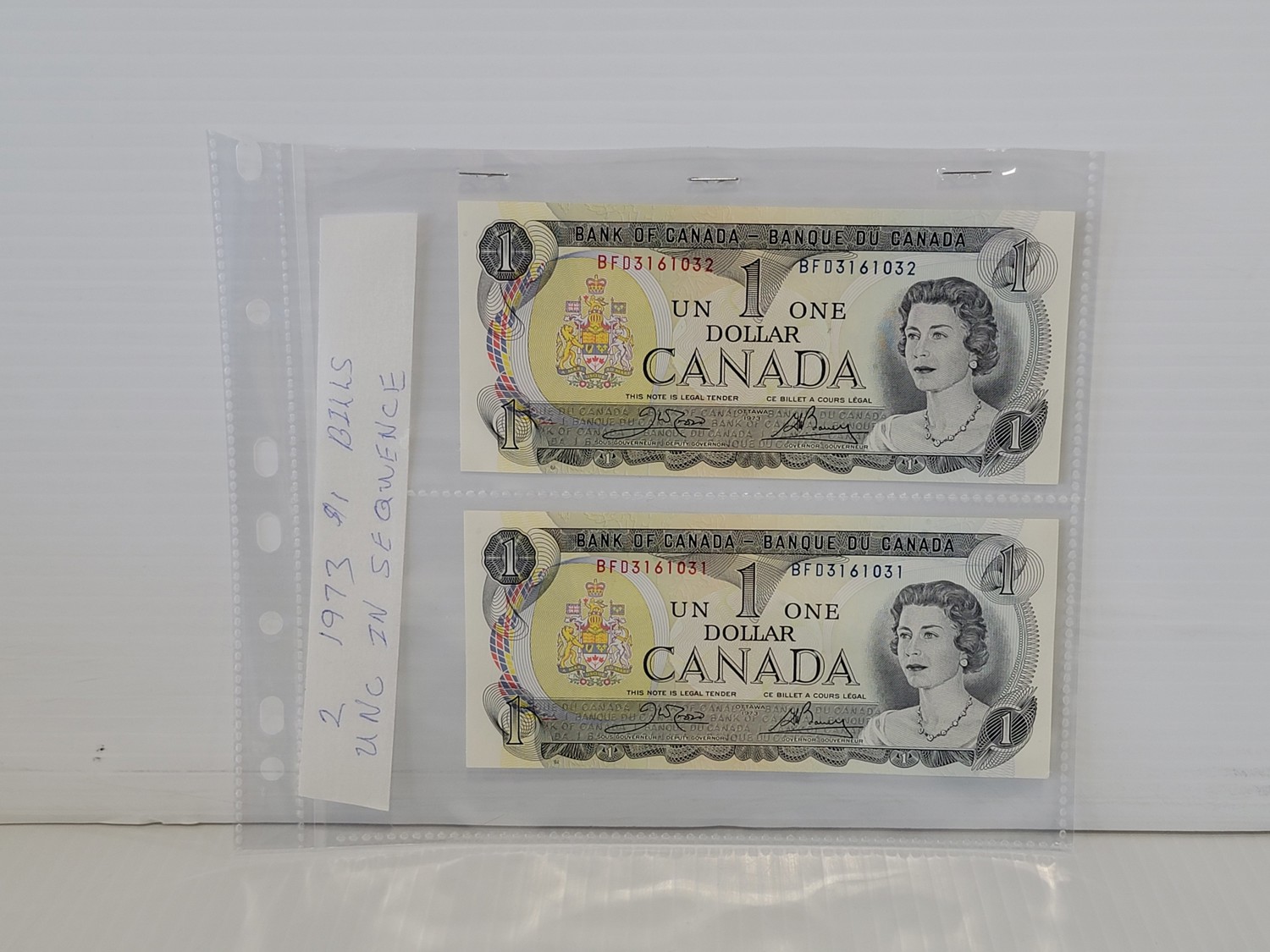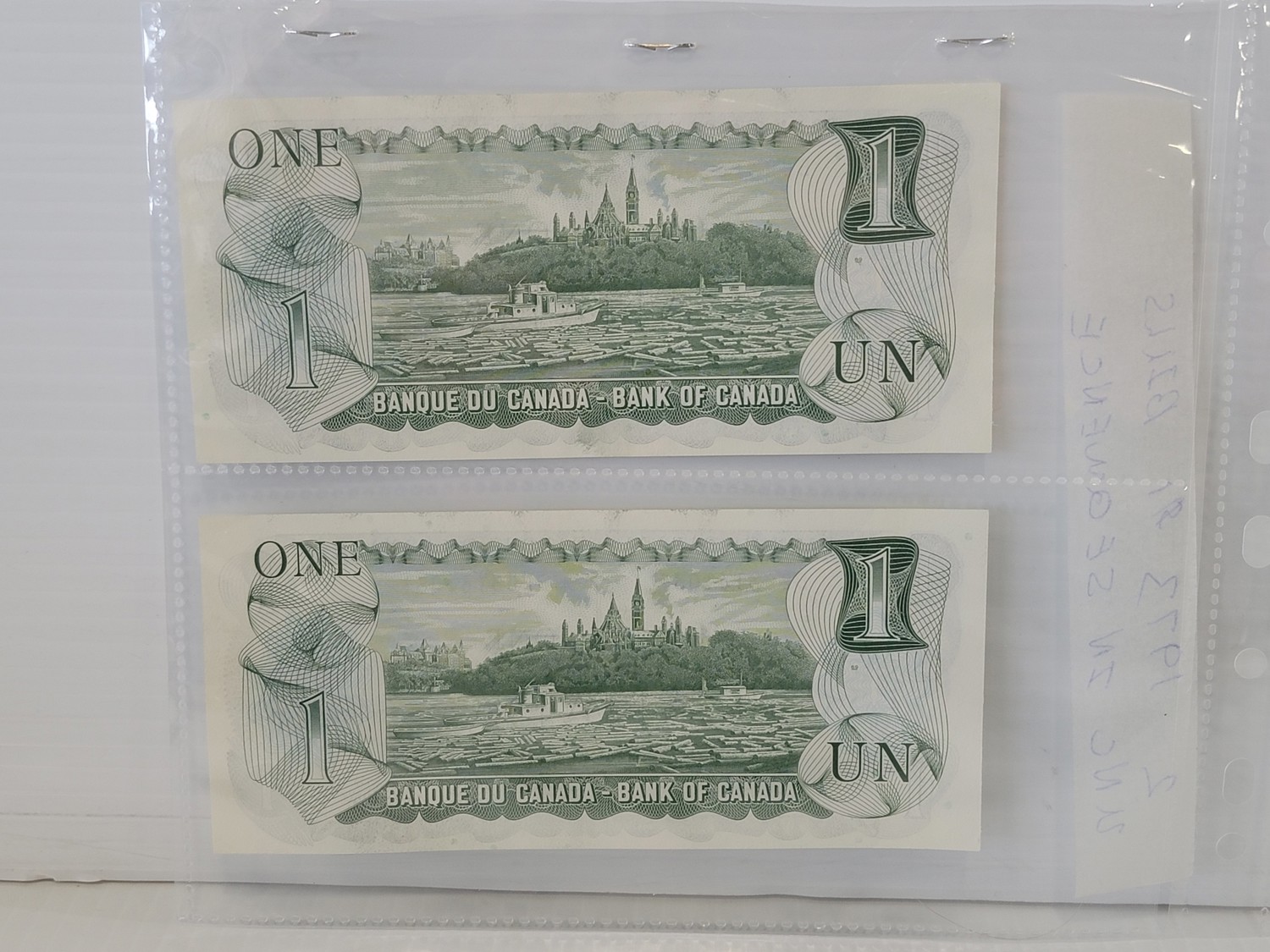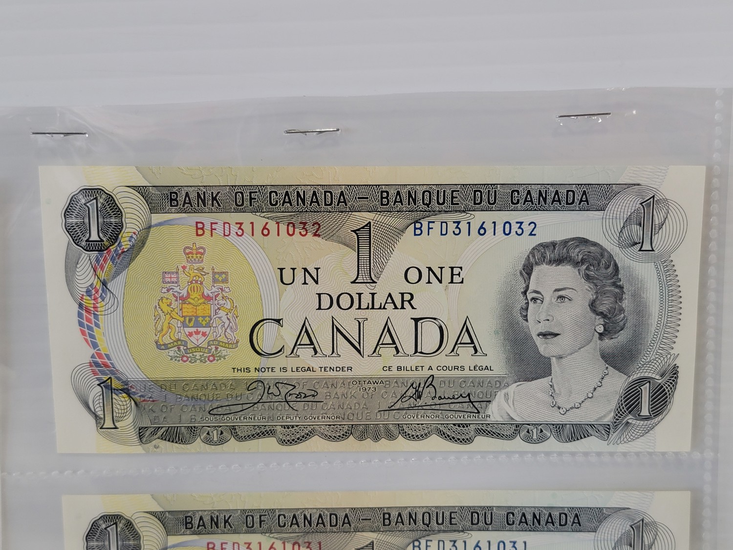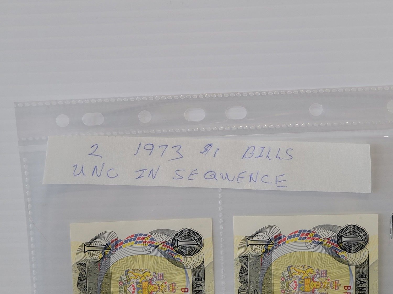 (2) 1973 Uncirculated Sequential Canadian One Dollar Bills