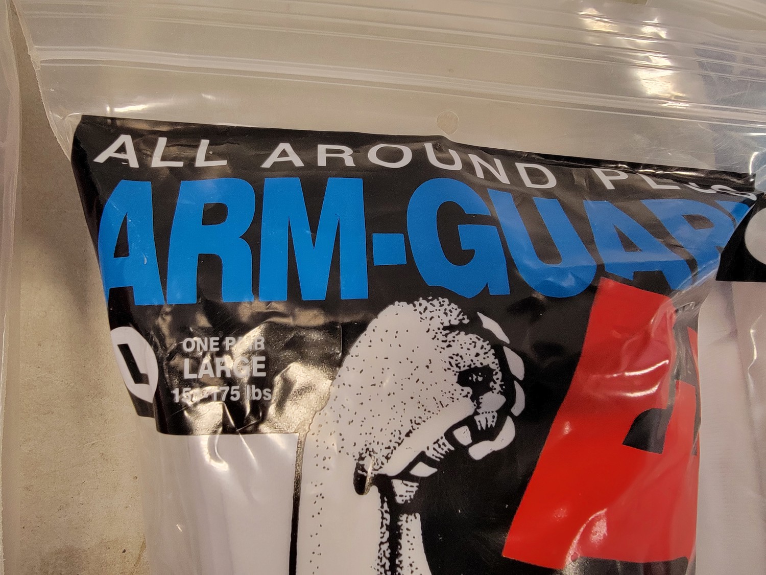 (2) Pickleball Paddles, Wilson Tennis Racket and (6) Size Large Arm-Guards