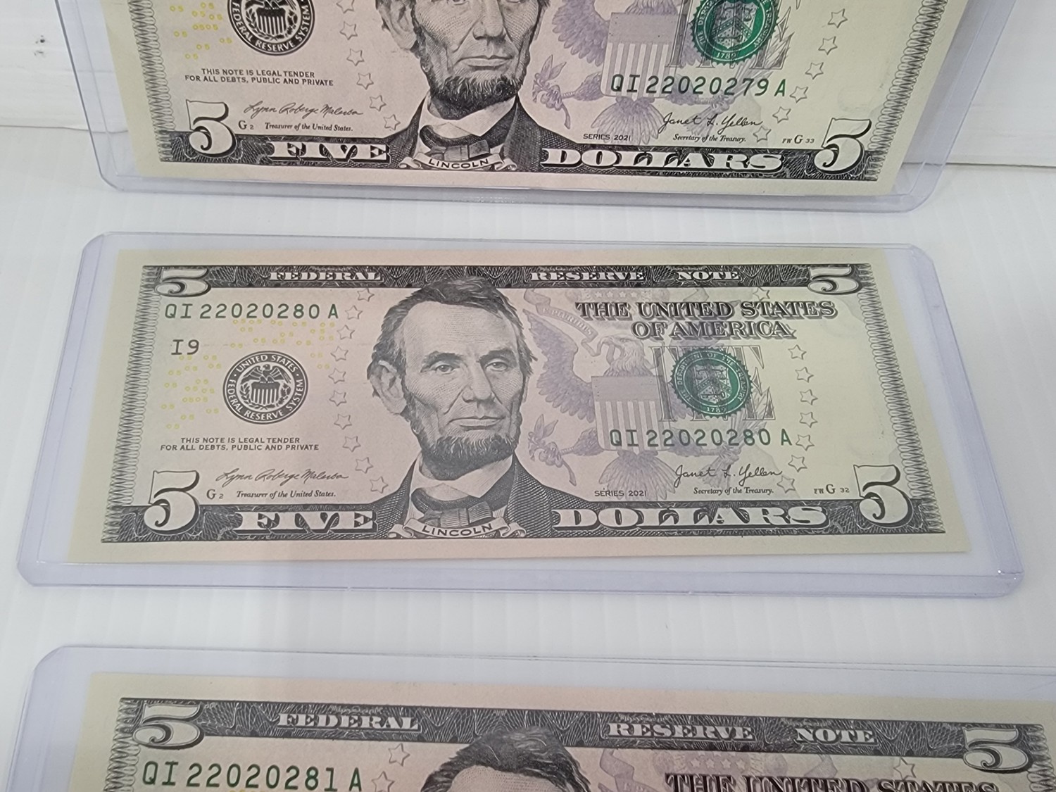 (3) USA Uncirculated Sequential Five Dollar Bills