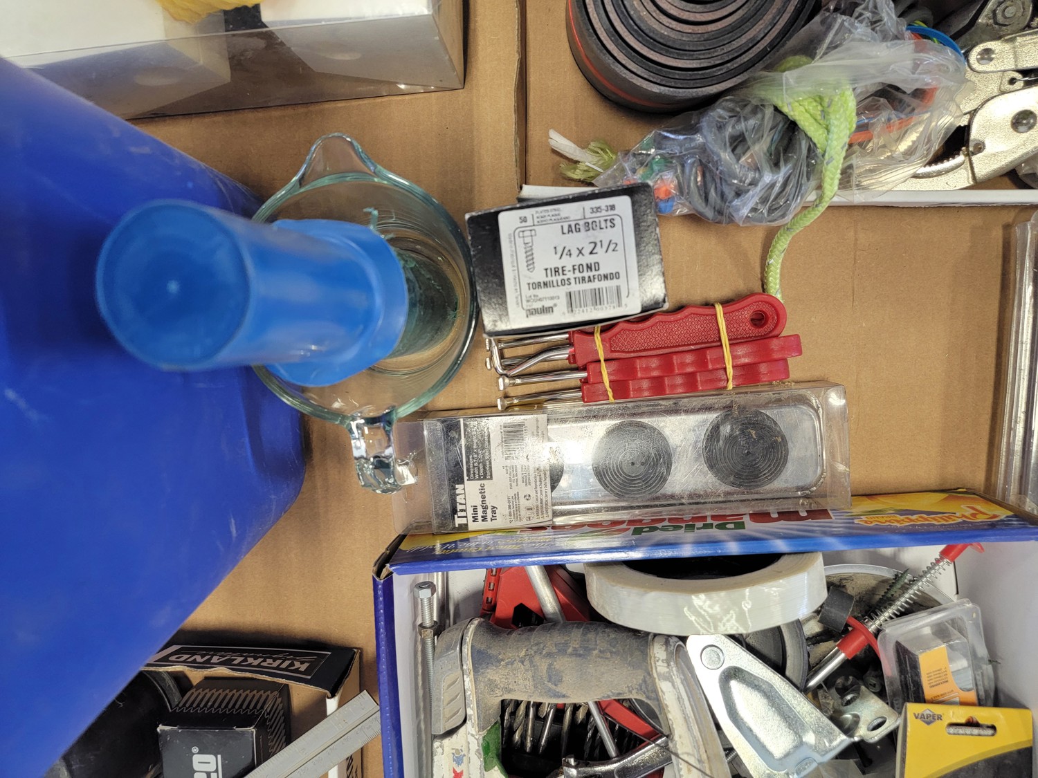tools, recycling bin, screws, sockets
