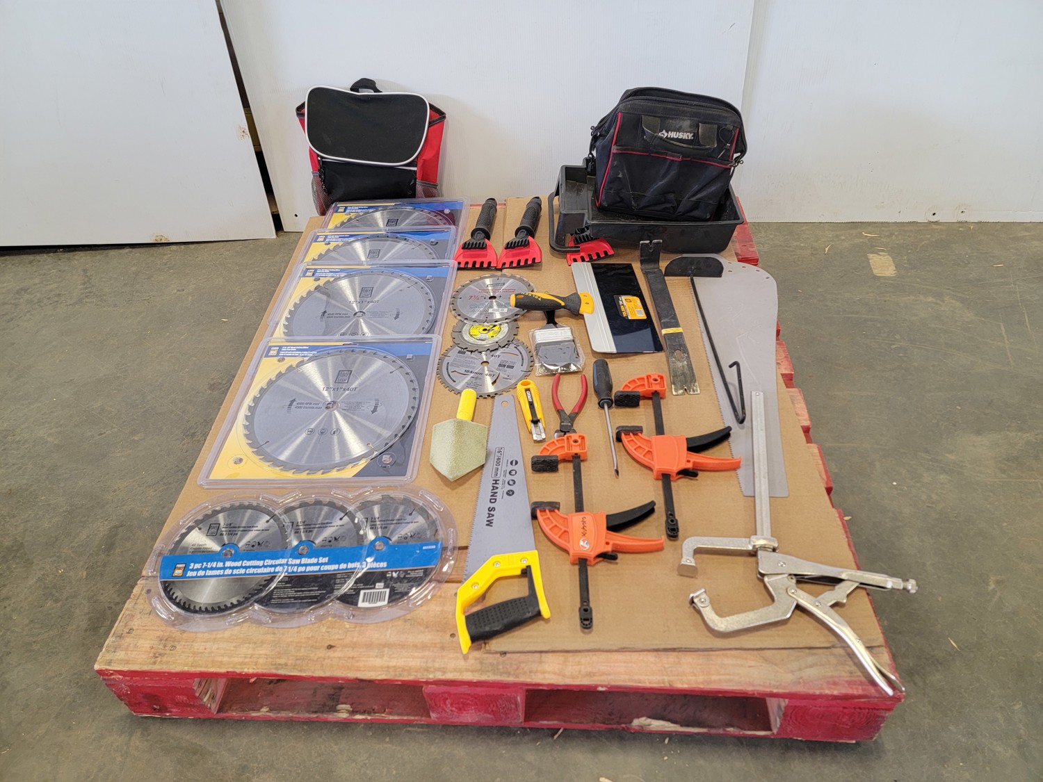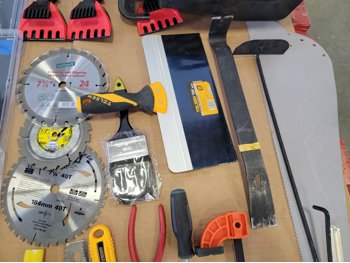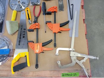 saw blades, clamps, hand saw