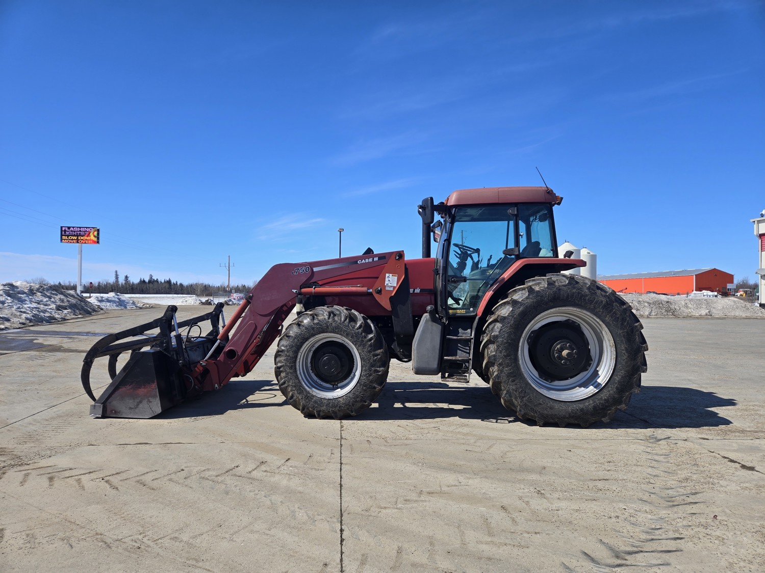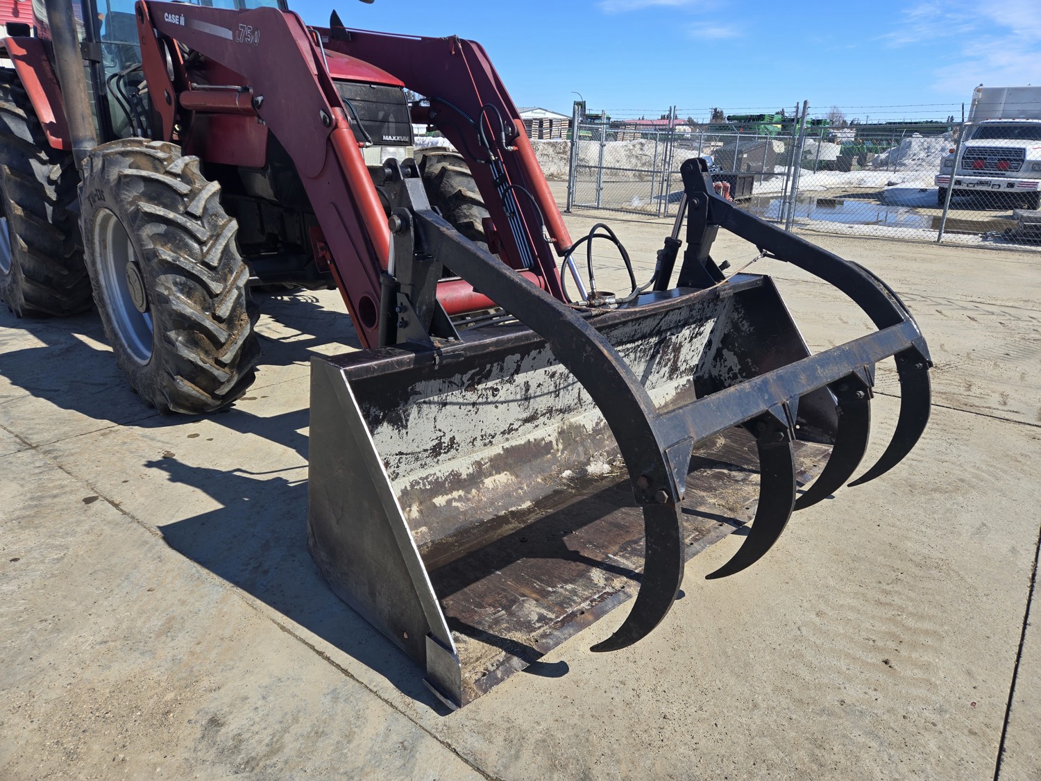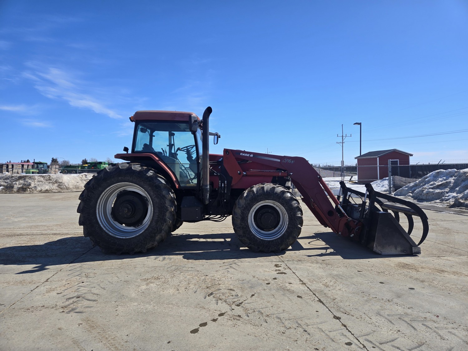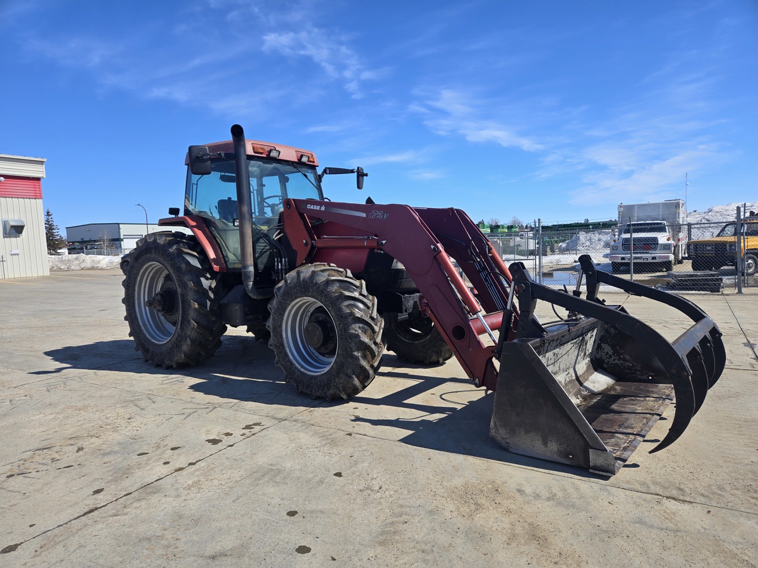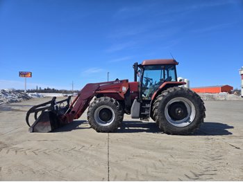 Case IH L750 loader, Q/A, grapple, mid mount hydraulic connection, TURBOCHARGED 5.9 L 6 cylinder diesel engine, 130 PTO HP, 16 speed partial power shift transmission, 31.6 GPM hydraulic pump, cab, left hand reverser, rear differential lock, joystick, A/C, radio, 1000 PTO, 3 rear hydraulic outlets, 16.9-30 front tires, 520/85R42 rear tires
