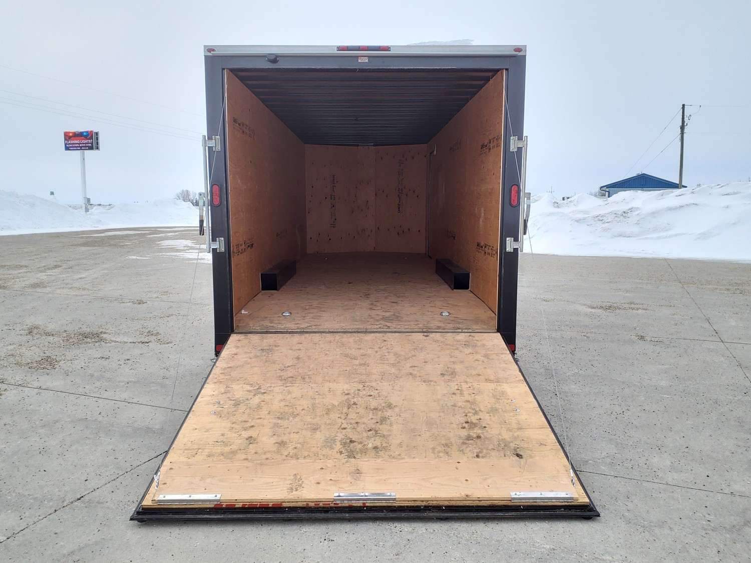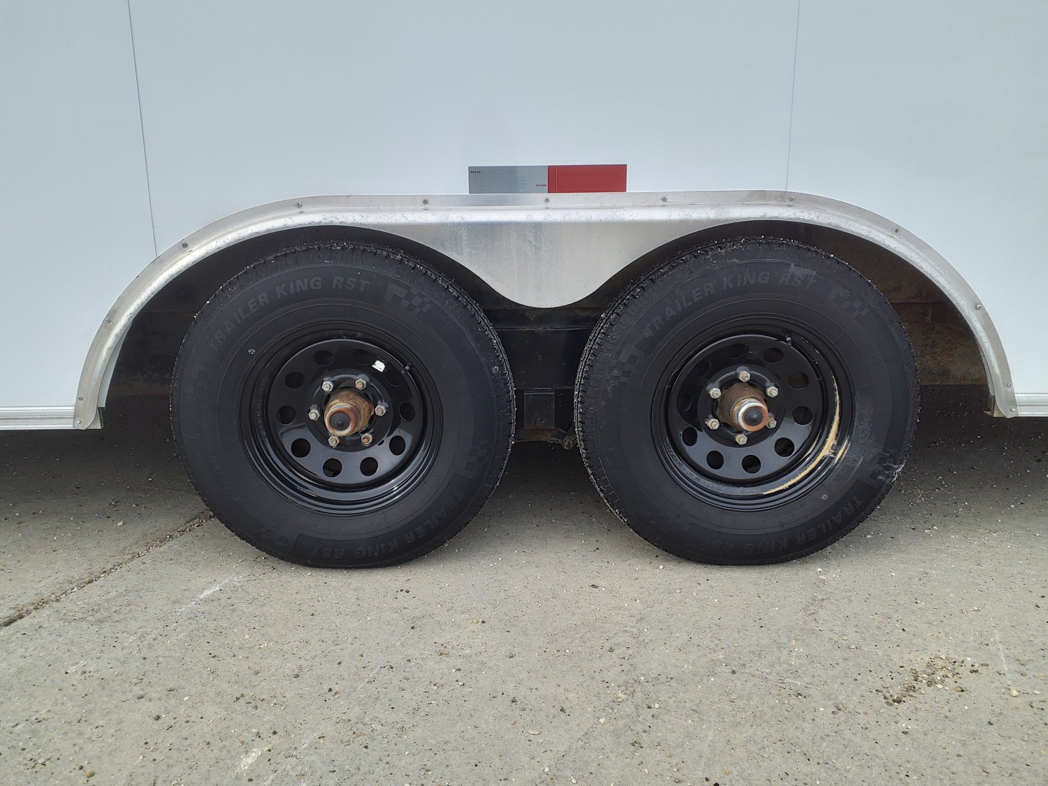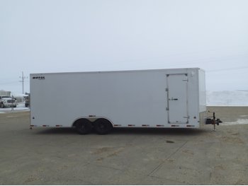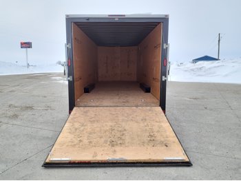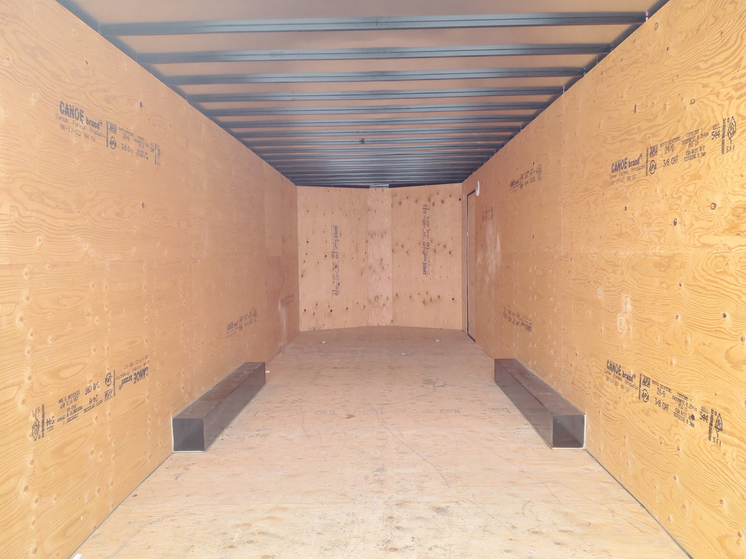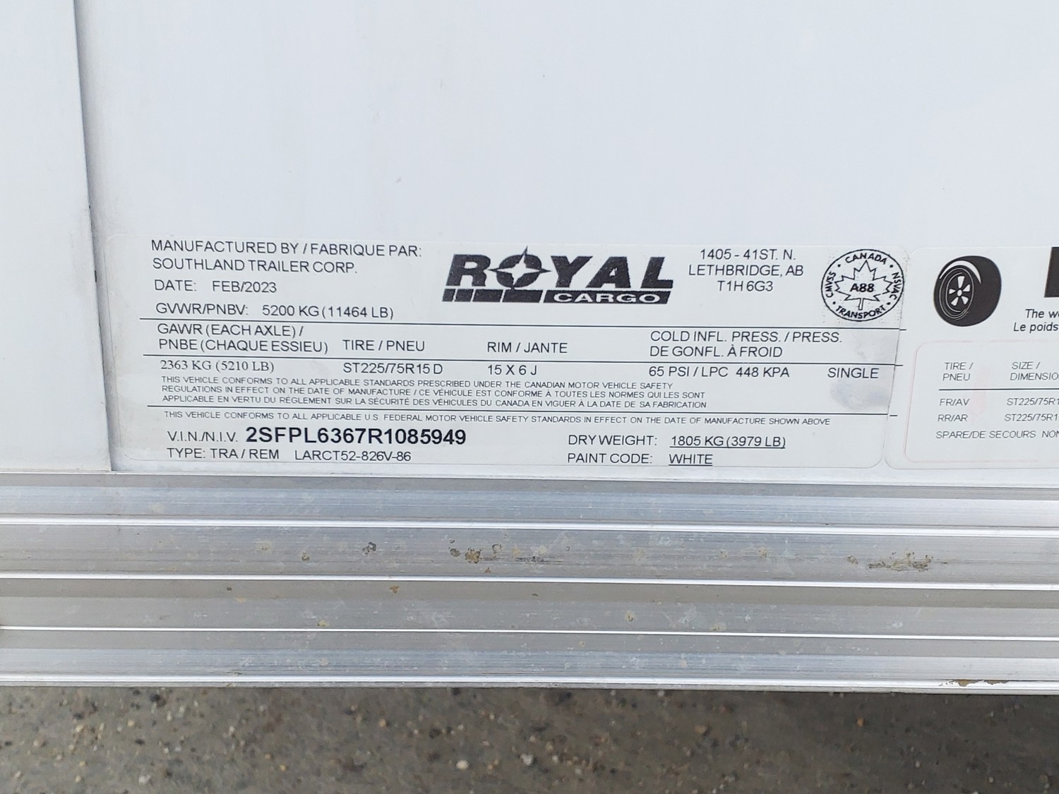 86 inch interior width, 96 inch interior height, 2-5/16 inch ball hitch, side door, fold down door, spring suspension, 225/75R15 tires