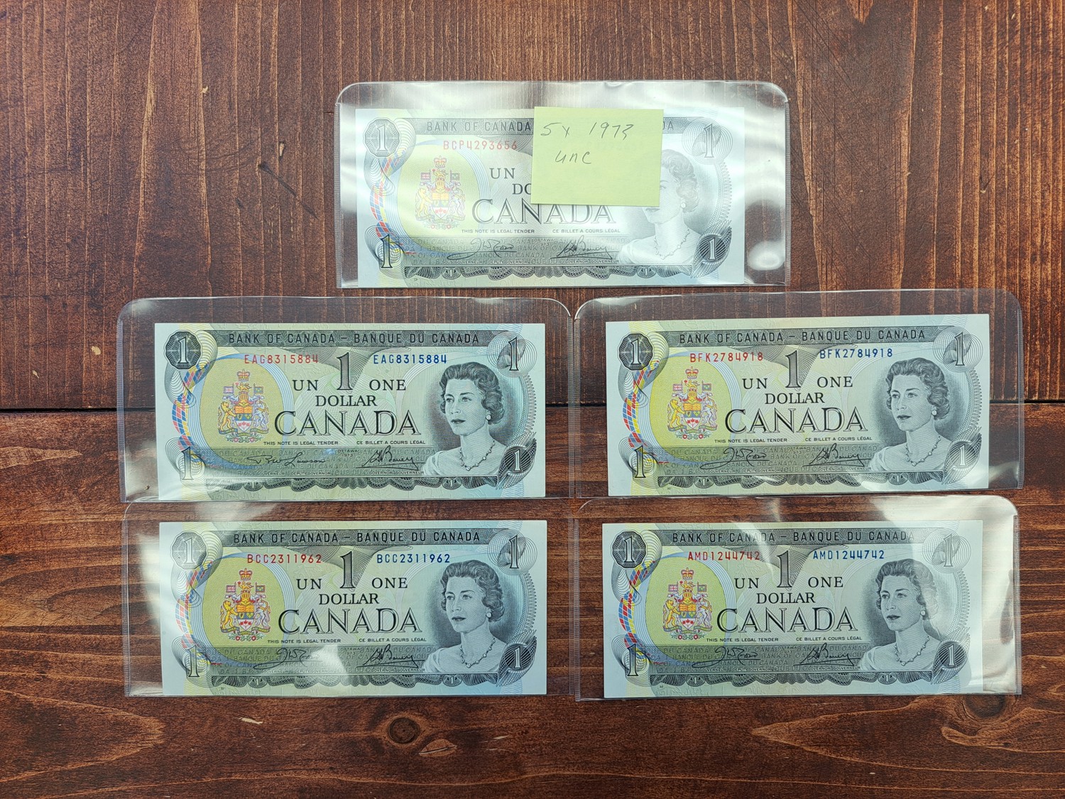 (5) 1973 Canadian 1 Dollar Bills