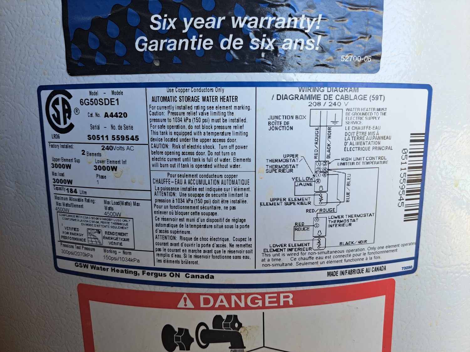 Electric 40 Gallon Hot Water Tank