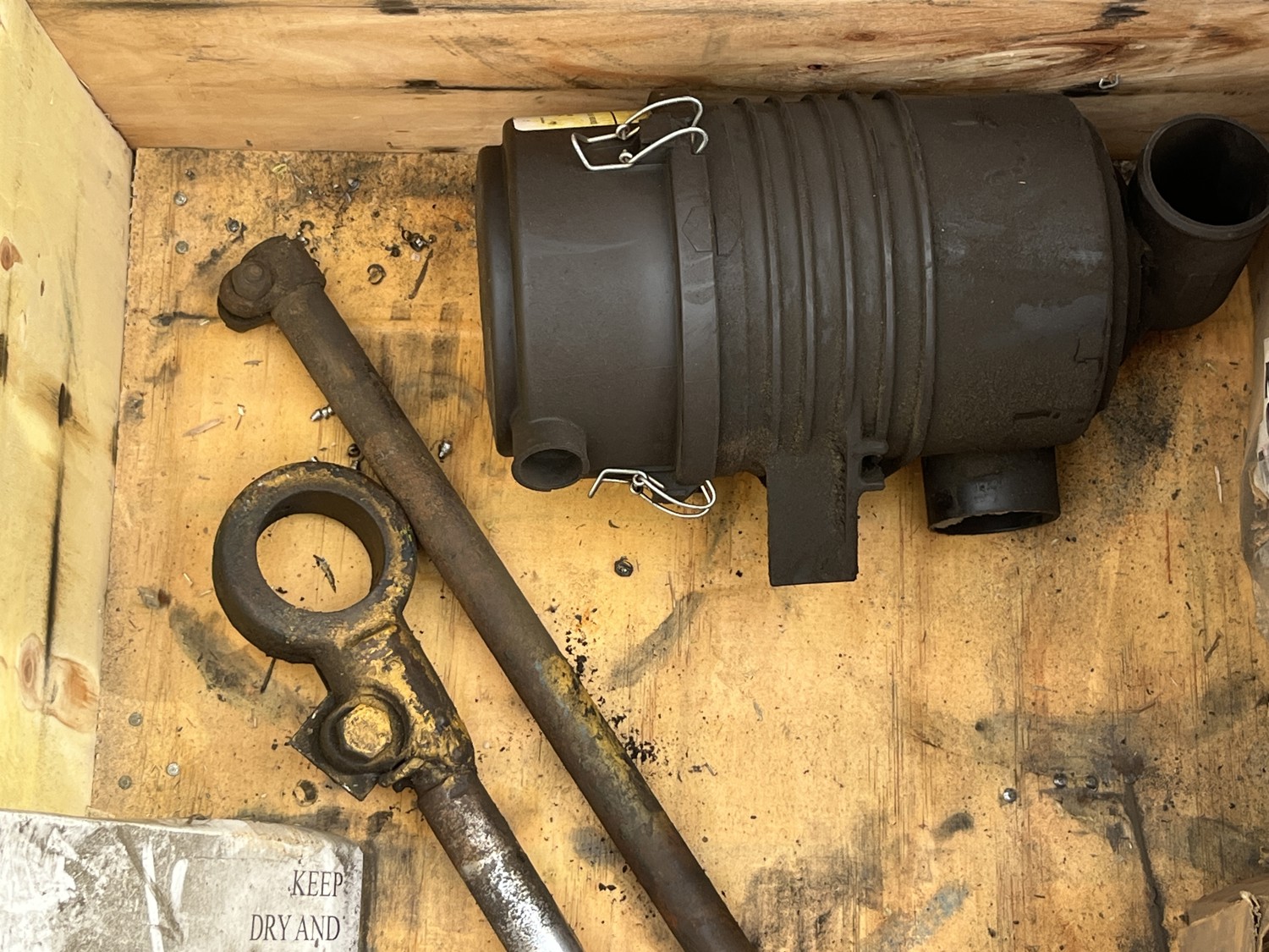 diesel, 2 speed manual transmission, additional parts in box including new roller chains, 7 ft lowered mast height, 14 ft max lift height, 1 mast stages, 48 inch pallet forks, 8-17.5LT front tires, 8R17.5LT rear tires