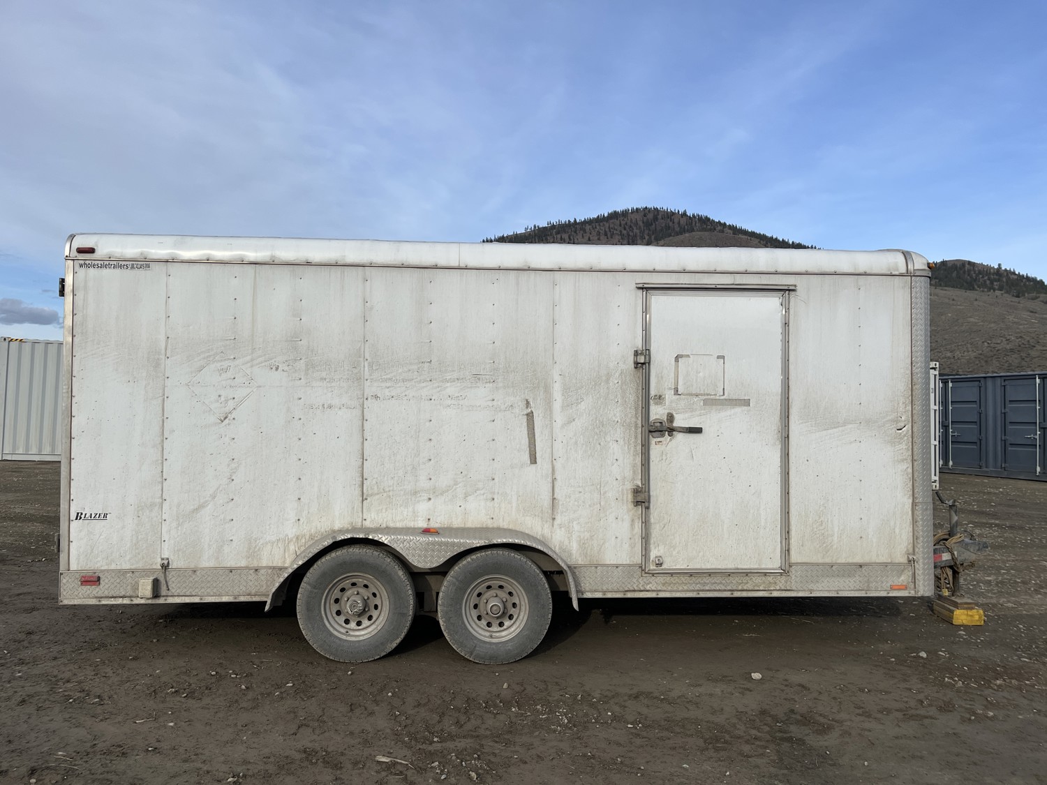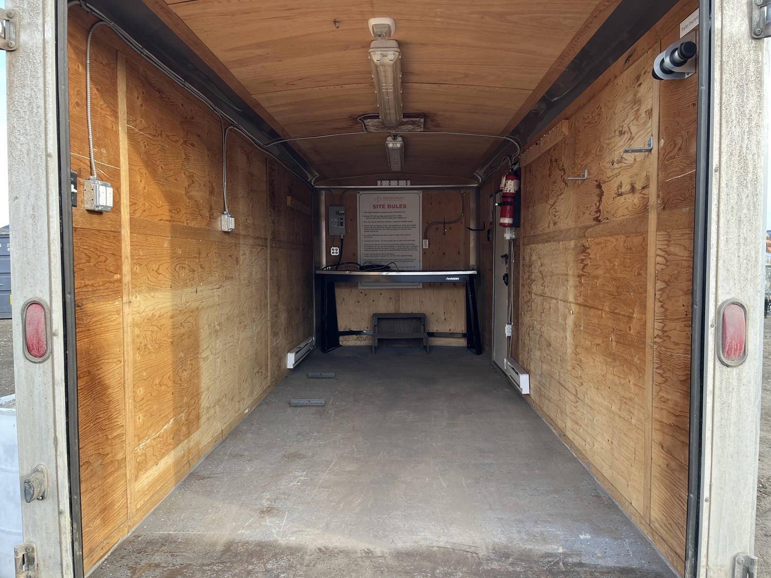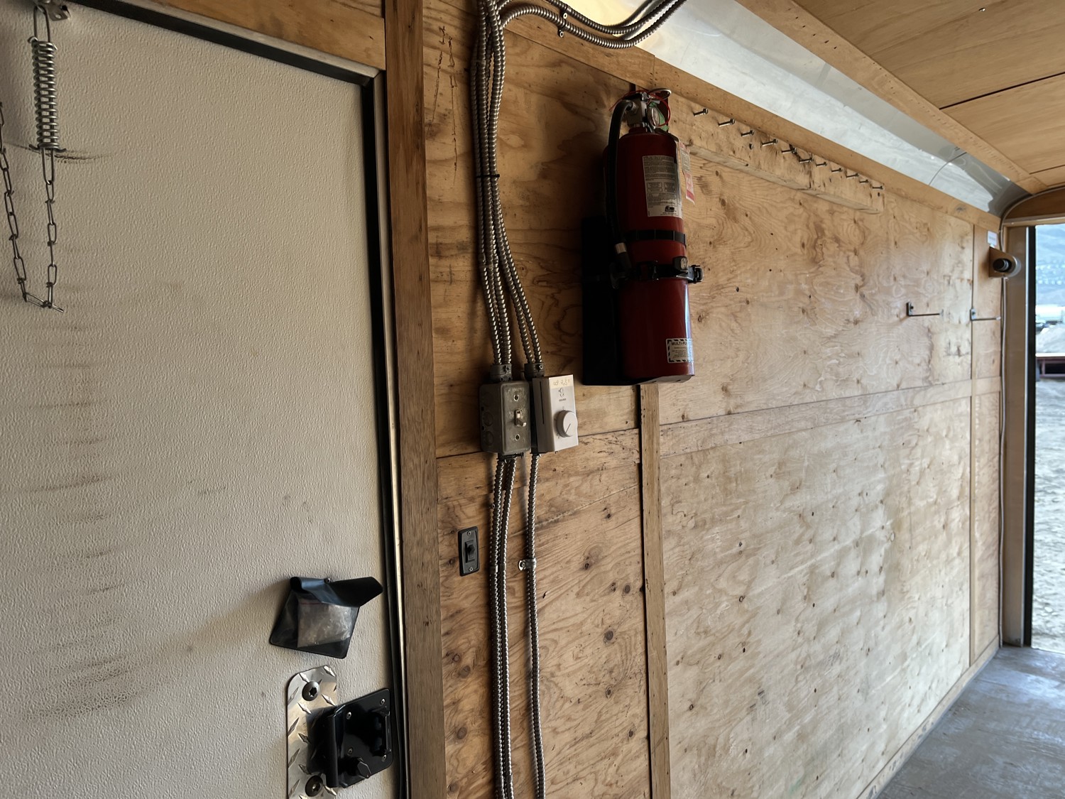 72 inch interior width, 84 inch interior height, side door, fold down door, electric brakes, spring suspension, slight water damage to roof panel see images*, 5000 lb axles, 225/17R15 tires