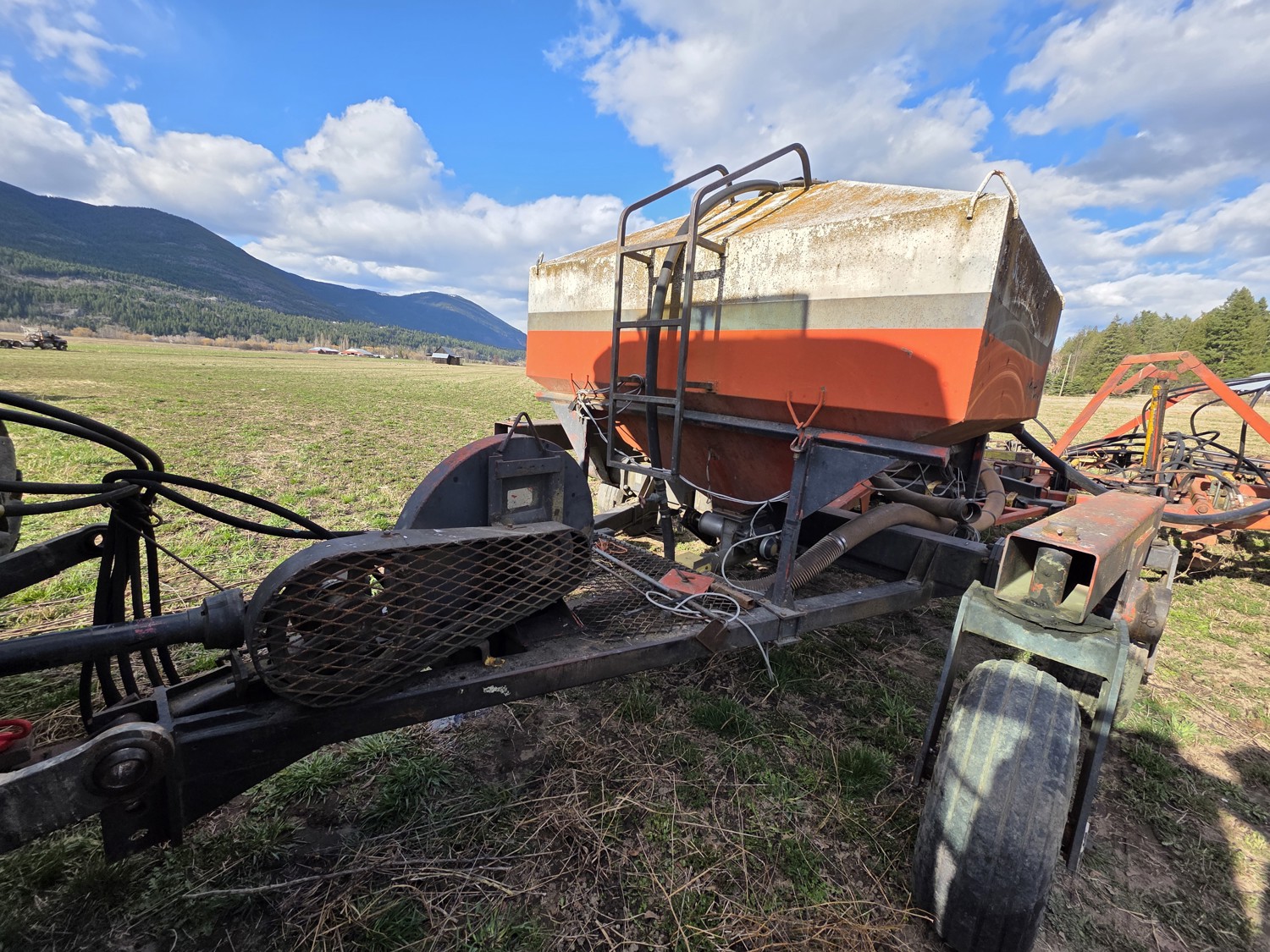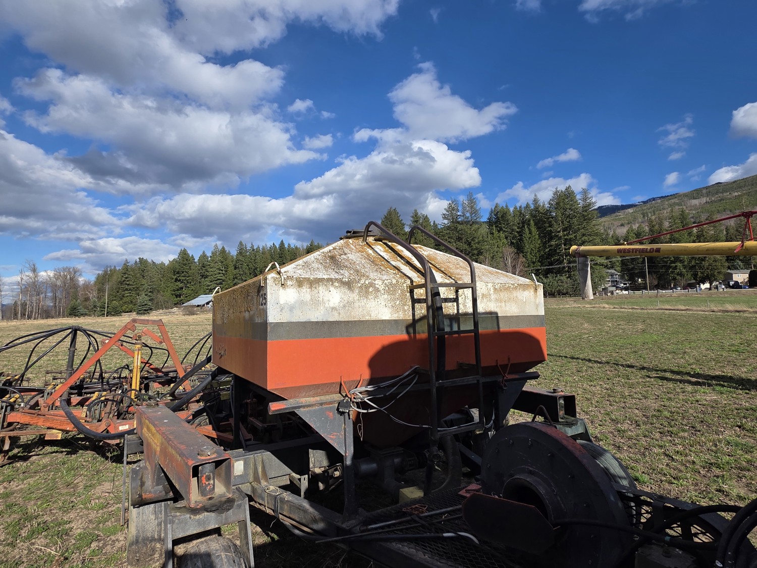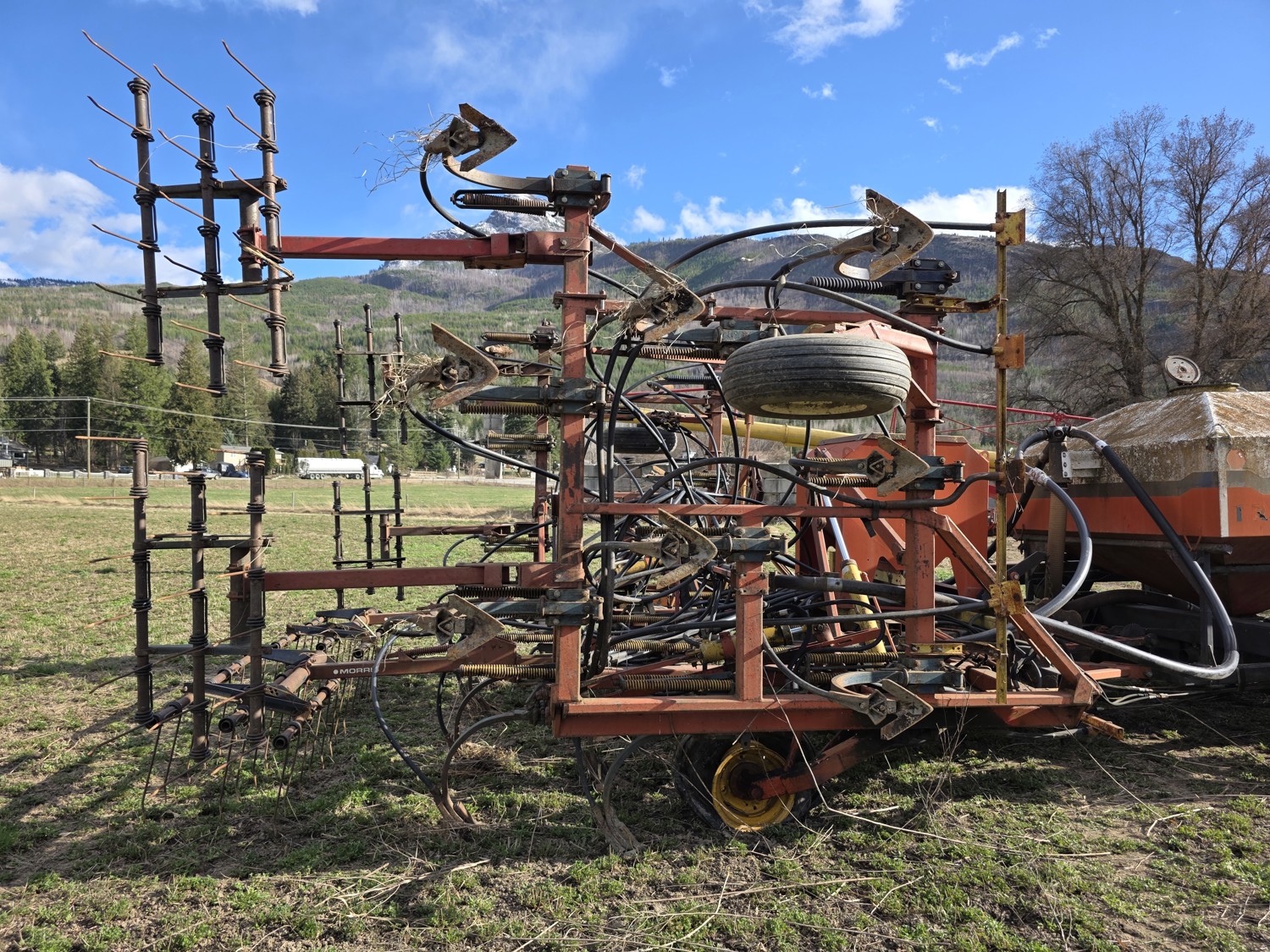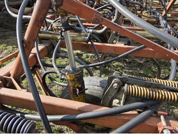 Air Cart: 2 compartments, 28.6' wide with 12.7 inch spacing between harrow tines, 11L-15SL front tires, 11L-15SL rear tires